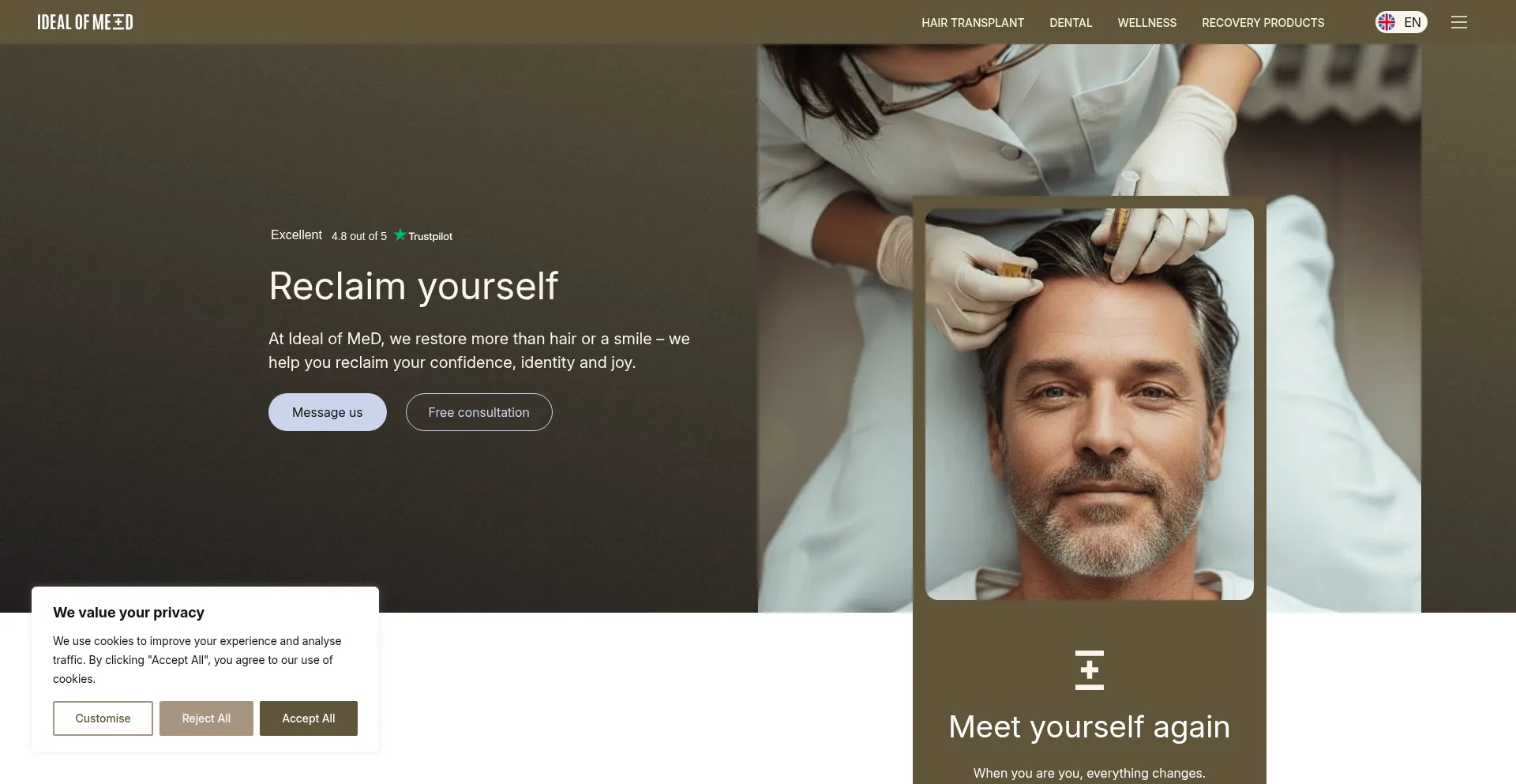 Reclaim yourself with all-inclusive hair and dental treatments at Ideal of MeD. Smart medtech, seamless aftercare, & lasting transformation.