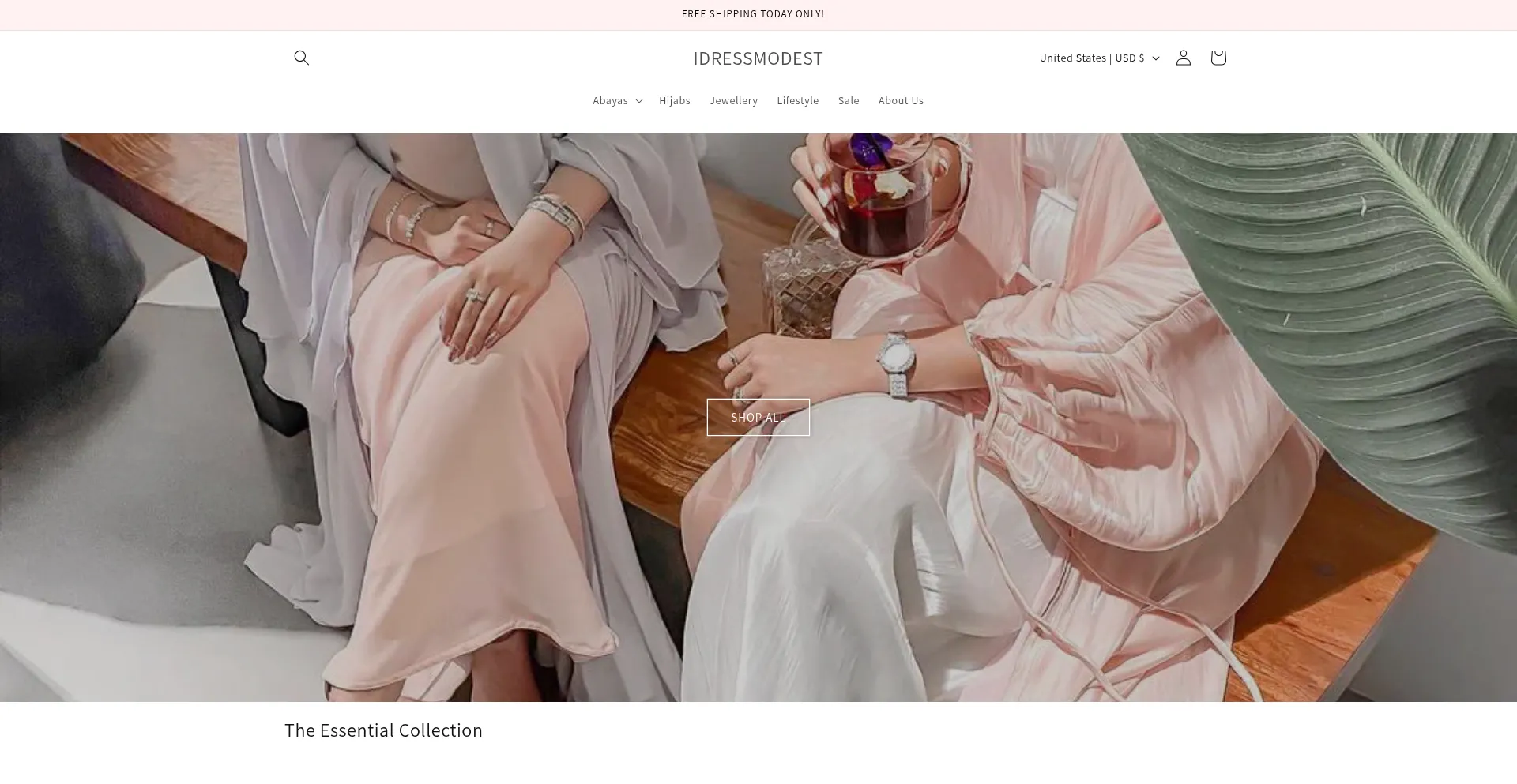 Analysis indicates that idressmodest.com operates as an e-commerce platform facilitating online transactions for goods or services. The website implements shopping cart functionality, payment processing systems, and product catalog features typical of commercial retail operations.