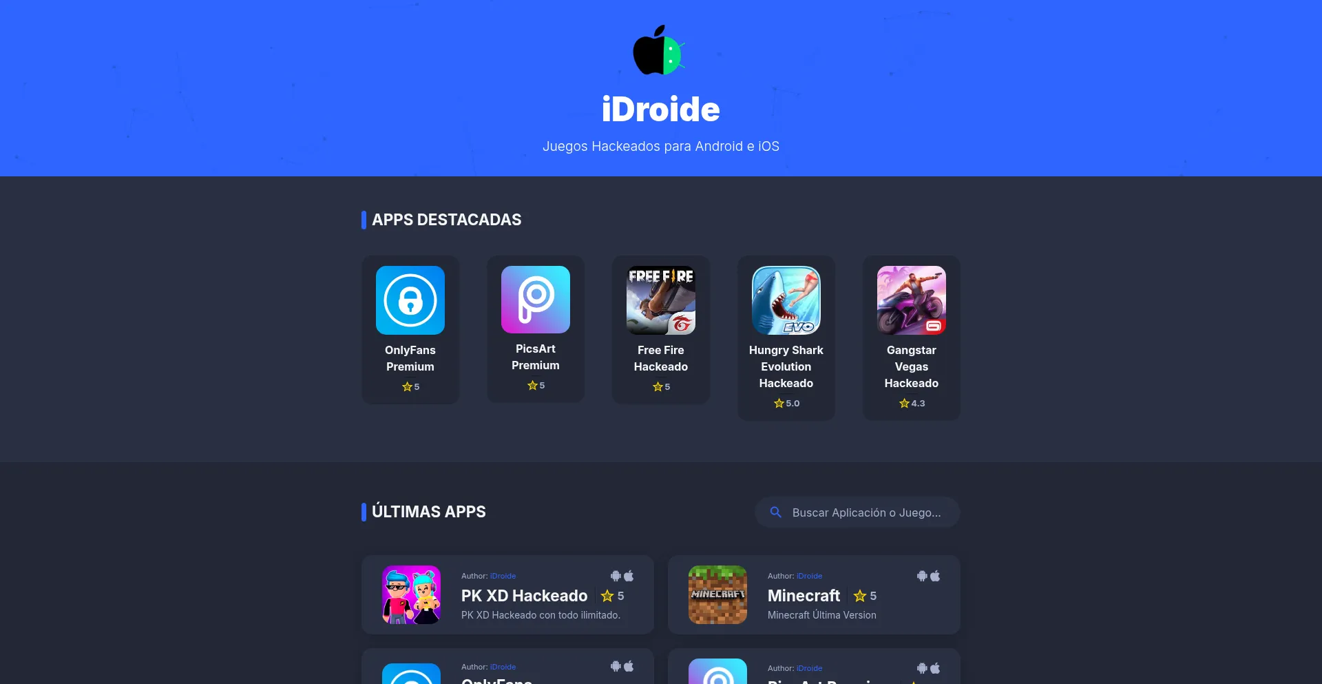 idroide.com uses Bootstrap, a widely-adopted open-source framework for responsive web development. Bootstrap enables efficient creation of mobile-friendly interfaces through standardized components and styling.