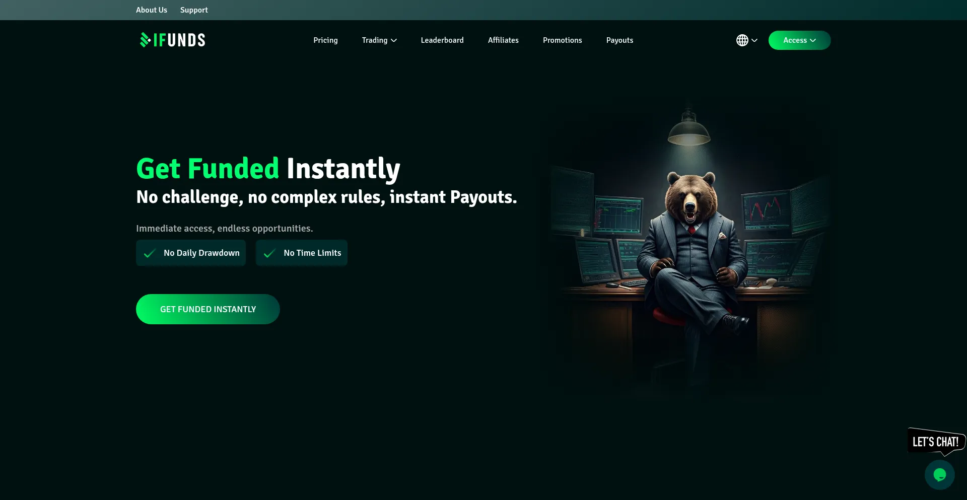 Get Funded Instantly. No challenge, no rules, instant Payouts.