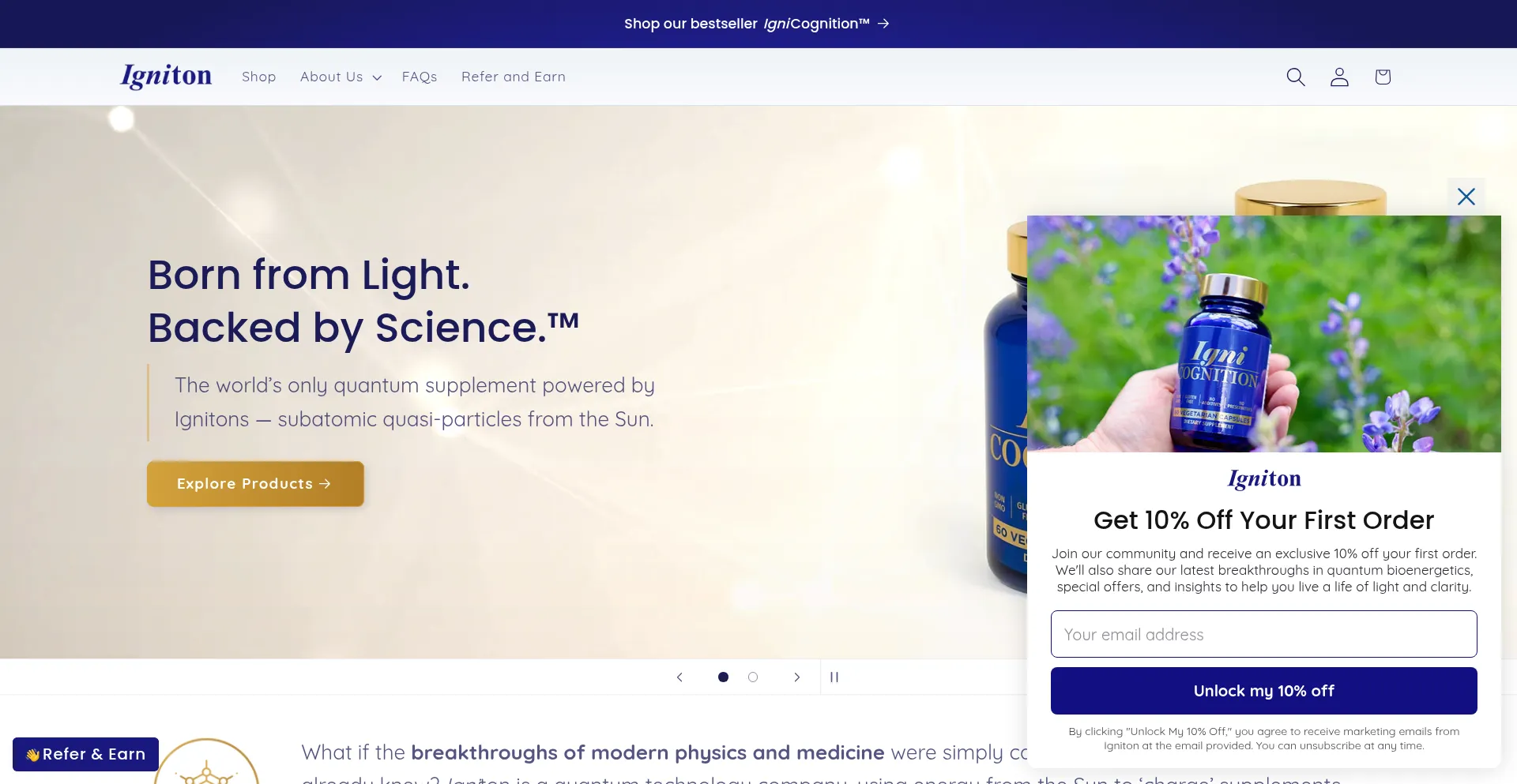Born from Light. Backed by Science.™ The world’s only quantum supplement powered by Ignitons — sub-atomic particles from the Sun discovered at CERN.
