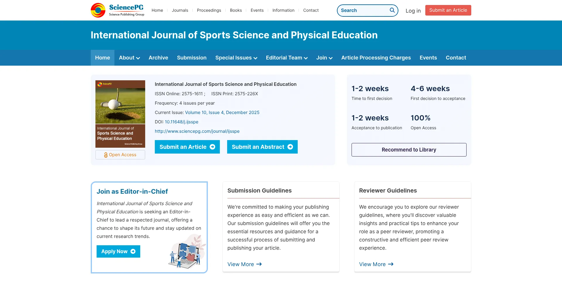 Journal Home:: International Journal of Sports Science and Physical Education:: Science Publishing Group