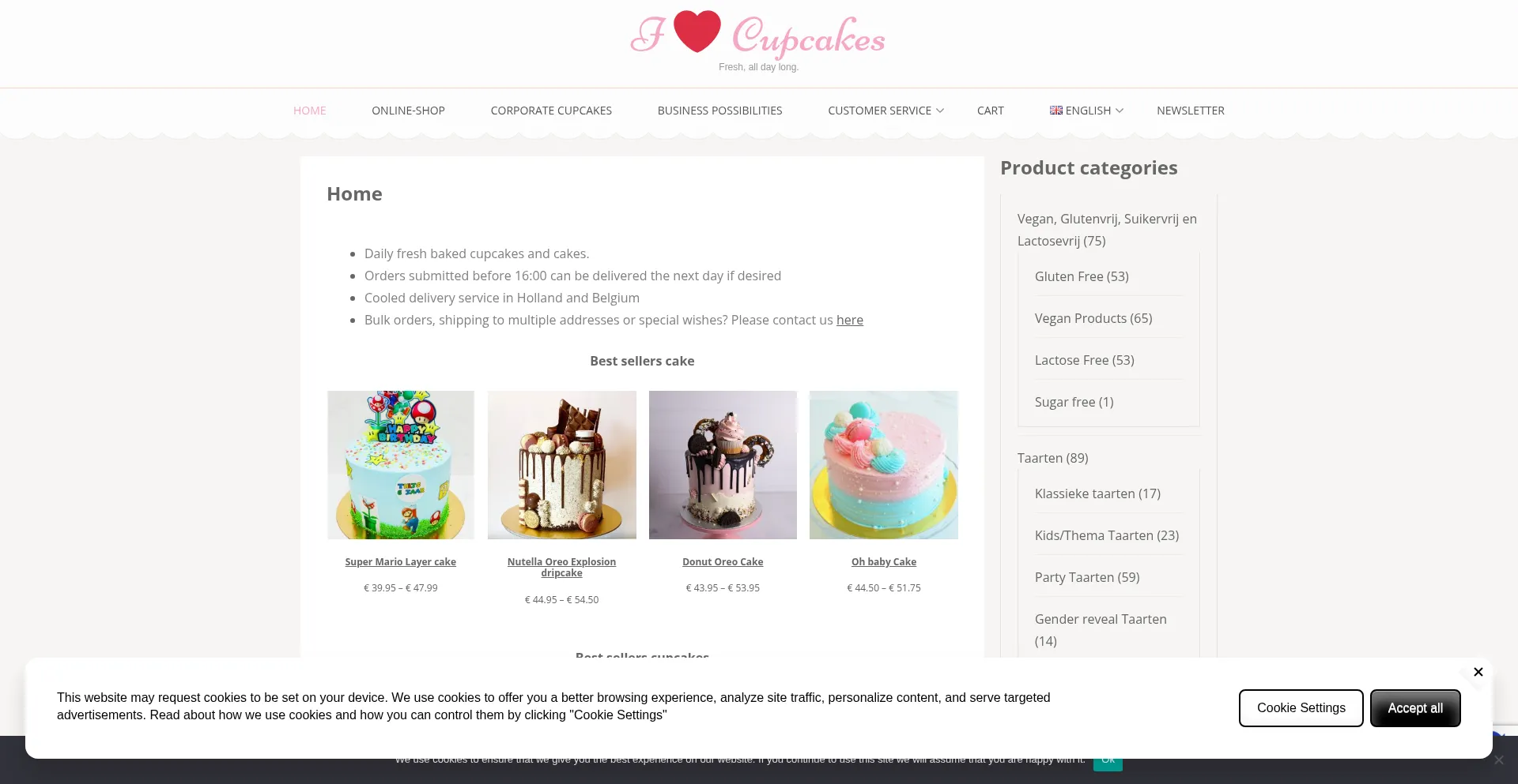 The website implements cookie consent mechanisms in compliance with privacy regulations such as GDPR or CCPA. This demonstrates that ilovecupcakes.nl adheres to data protection standards and provides users with control over personal data collection practices.