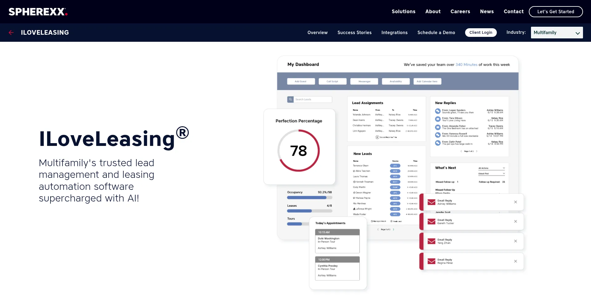 Spherexx ILoveLeasing, a powerful multifamily CRM designed to streamline leasing with AI-driven automation, customizable digital agents, and detailed lead tracking. Book a demo...