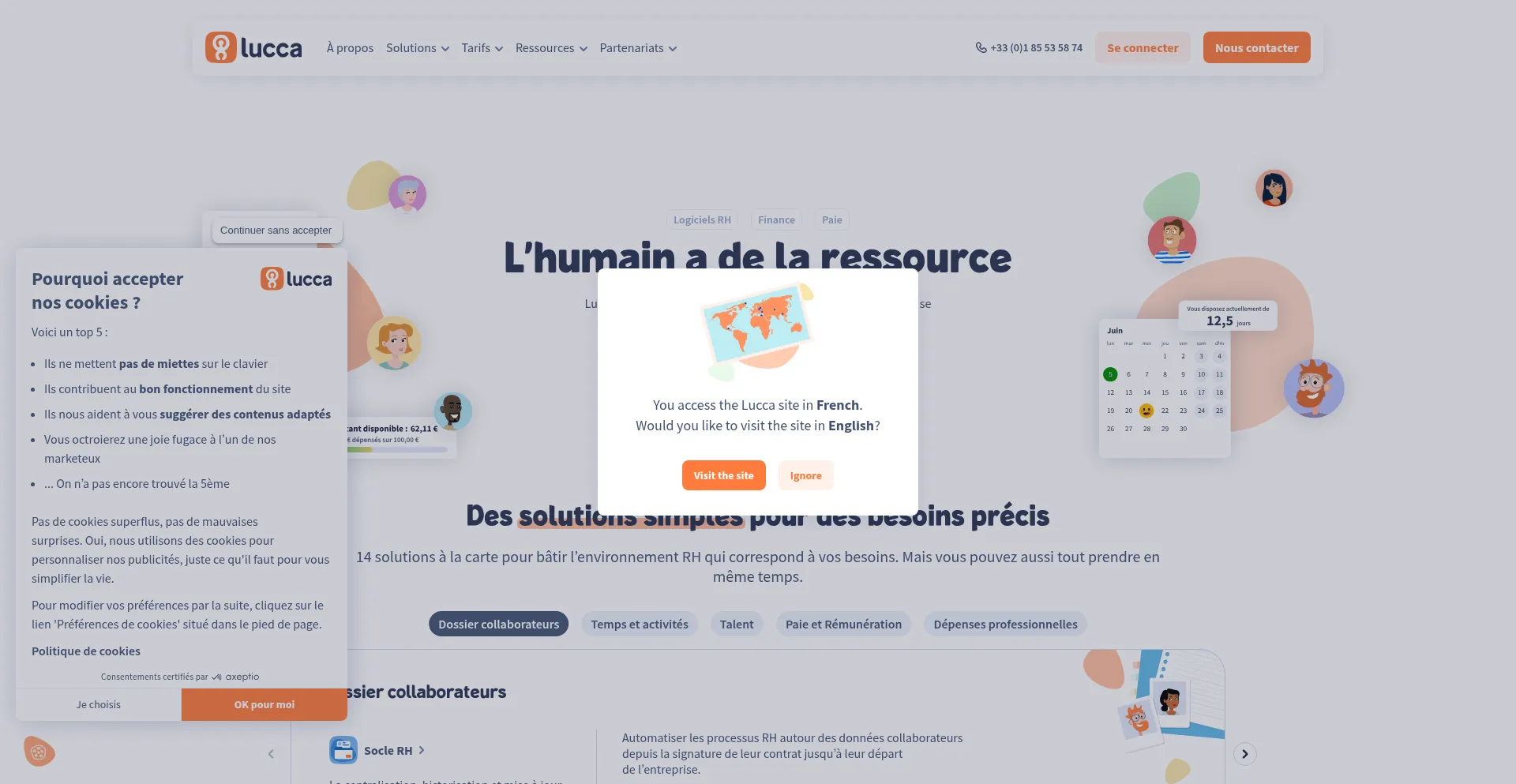 pagead2.googlesyndication.com dam.luccasoftware.com fr.trustpilot.com www.lucca-software.es static.axept.io fonts.googleapis.com www.lucca-software.de www.googletagmanager.com cdnjs.cloudflare.com lucca.ilucca.net +27 more