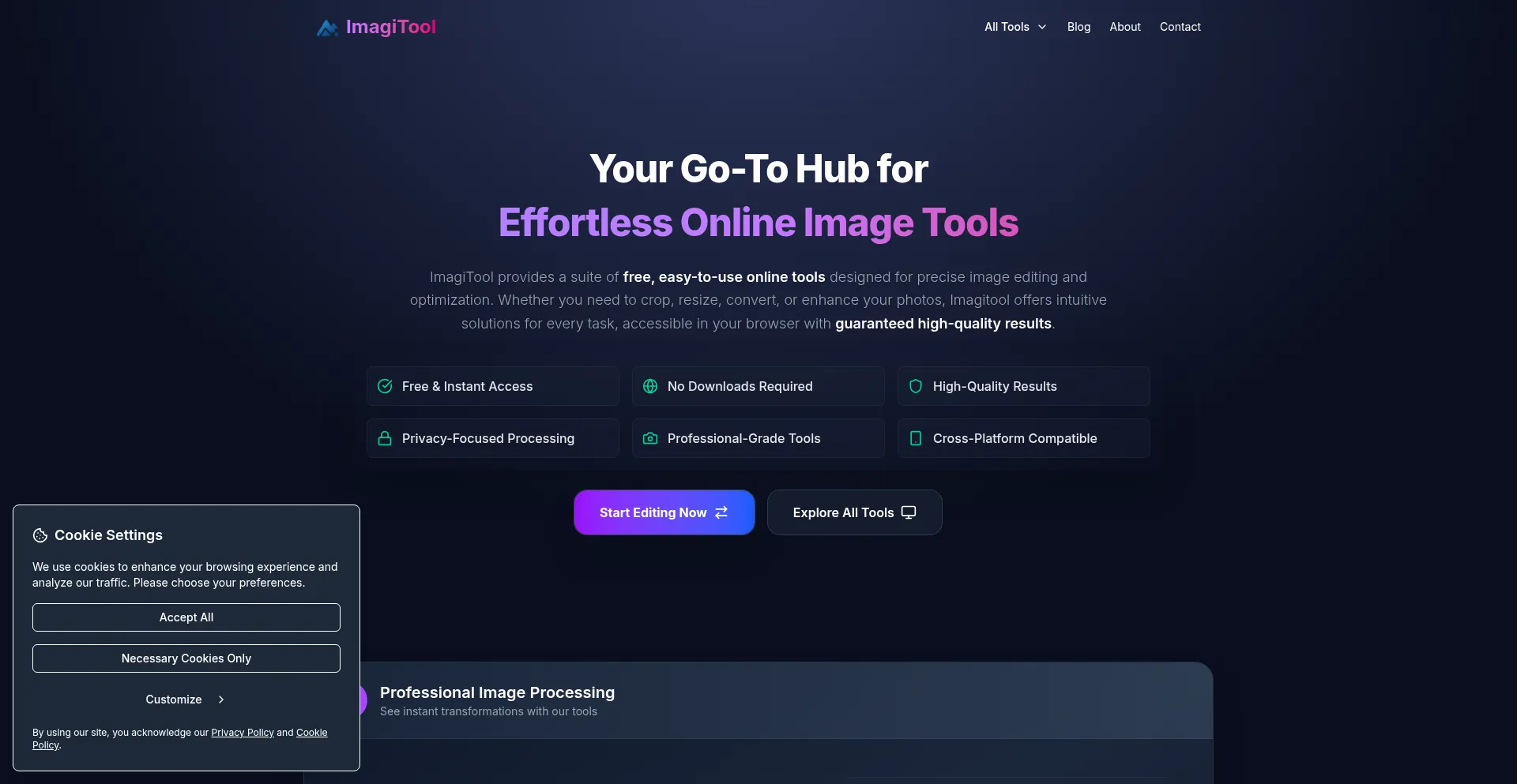 The website implements cookie consent mechanisms in compliance with privacy regulations such as GDPR or CCPA. This demonstrates that imagitool.com adheres to data protection standards and provides users with control over personal data collection practices.