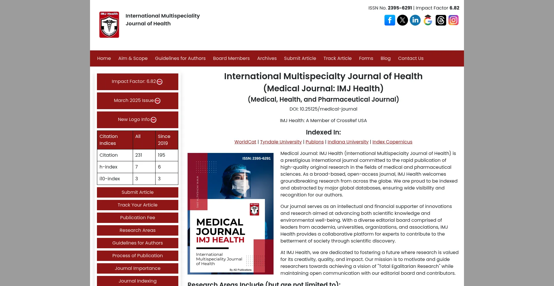 Medical Journal IMJ Health is an open access international journal for Paper Publication and also provide articles of Medical, Health and Pharmaceutical.