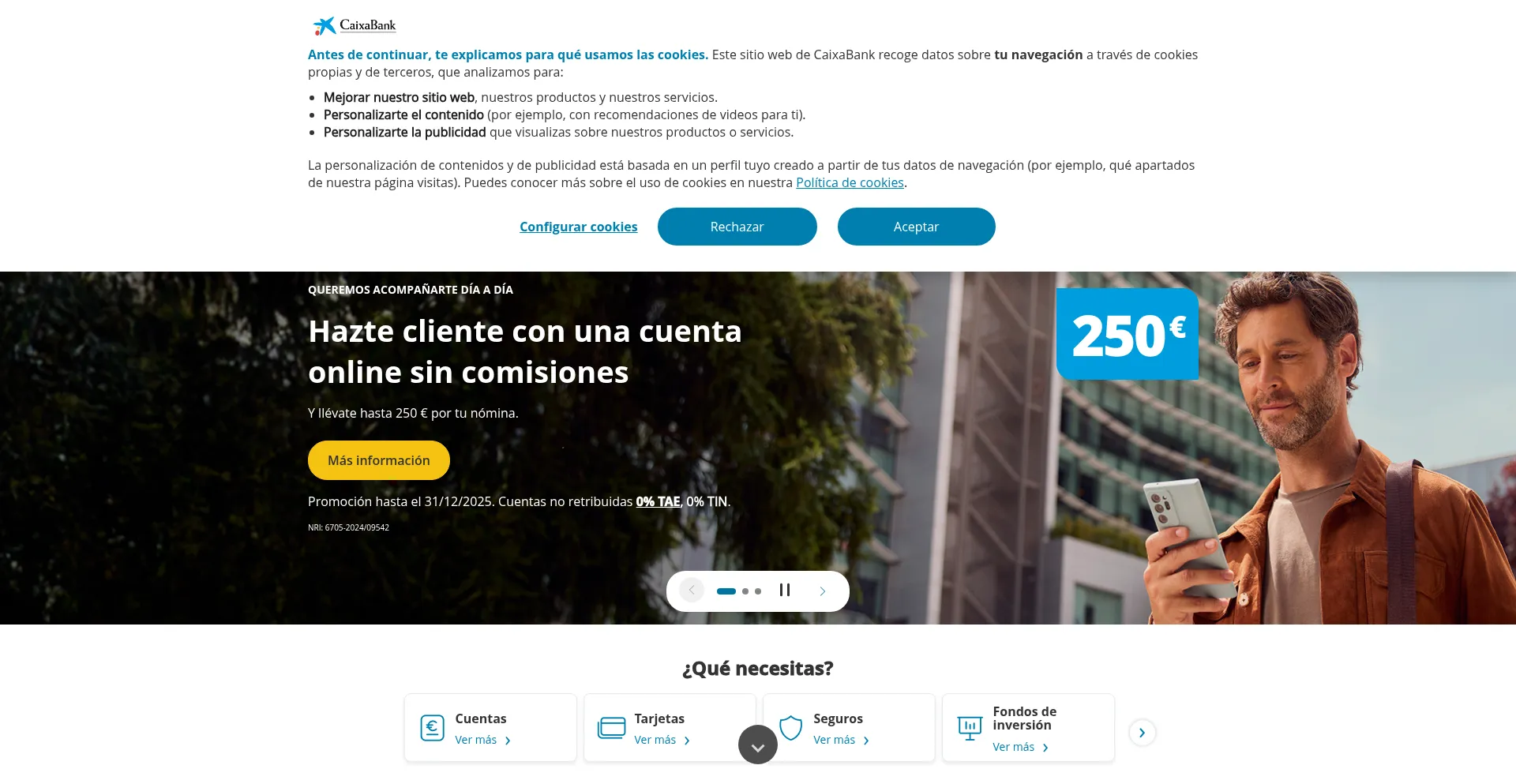 Consulta nuestros productos financieros para Particulares. Tus cuentas, préstamos, hipotecas, tarjetas o fondos de inversión con acceso y contratación online en CaixaBank.