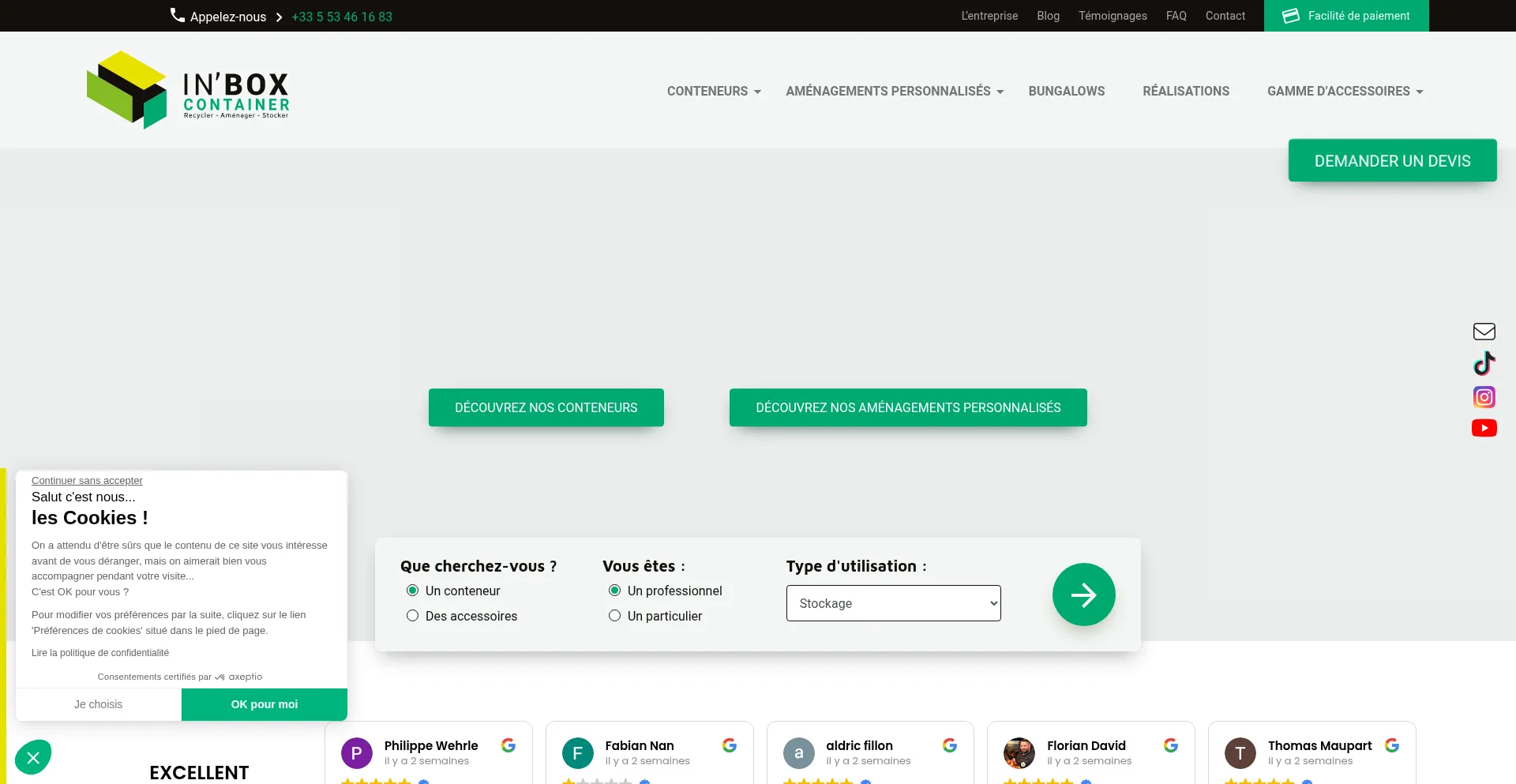 In’BOX, spécialiste de la vente de conteneurs maritimes et bungalows, vous accompagne de A à Z dans vos projets de stockage ou d'aménagement
