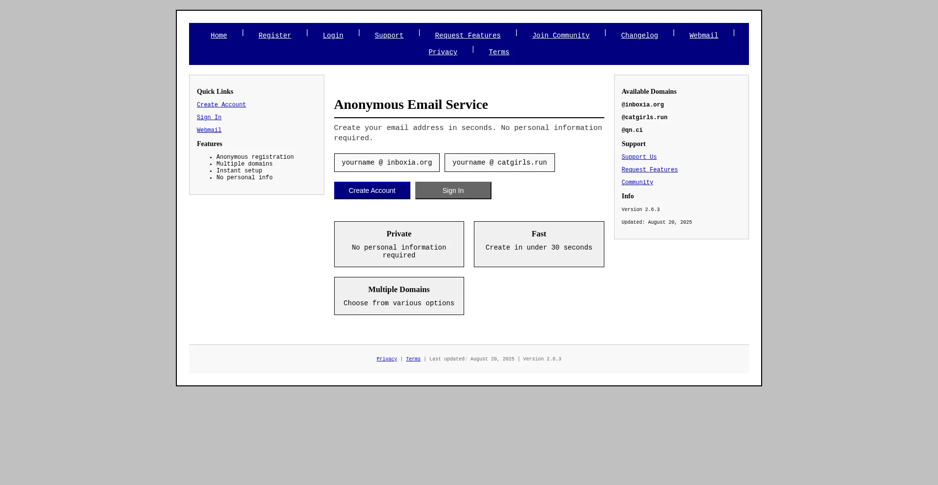 As of October 20, 2025, Inboxia.org has a very low trust score of 1/100 according to our algorithm. Through the security analysis, it has been identified as a potential suspicious website. Our detection system has found multiple risk indicators, and we recommend avoiding this website.