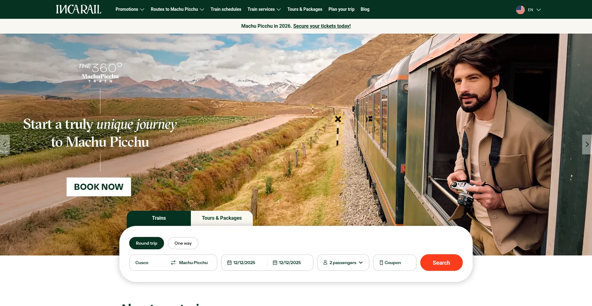 Buy train tickets to Machu Picchu online with Inca Rail. Some services include entrance tickets to the citadel. Book now and plan your unforgettable journey!