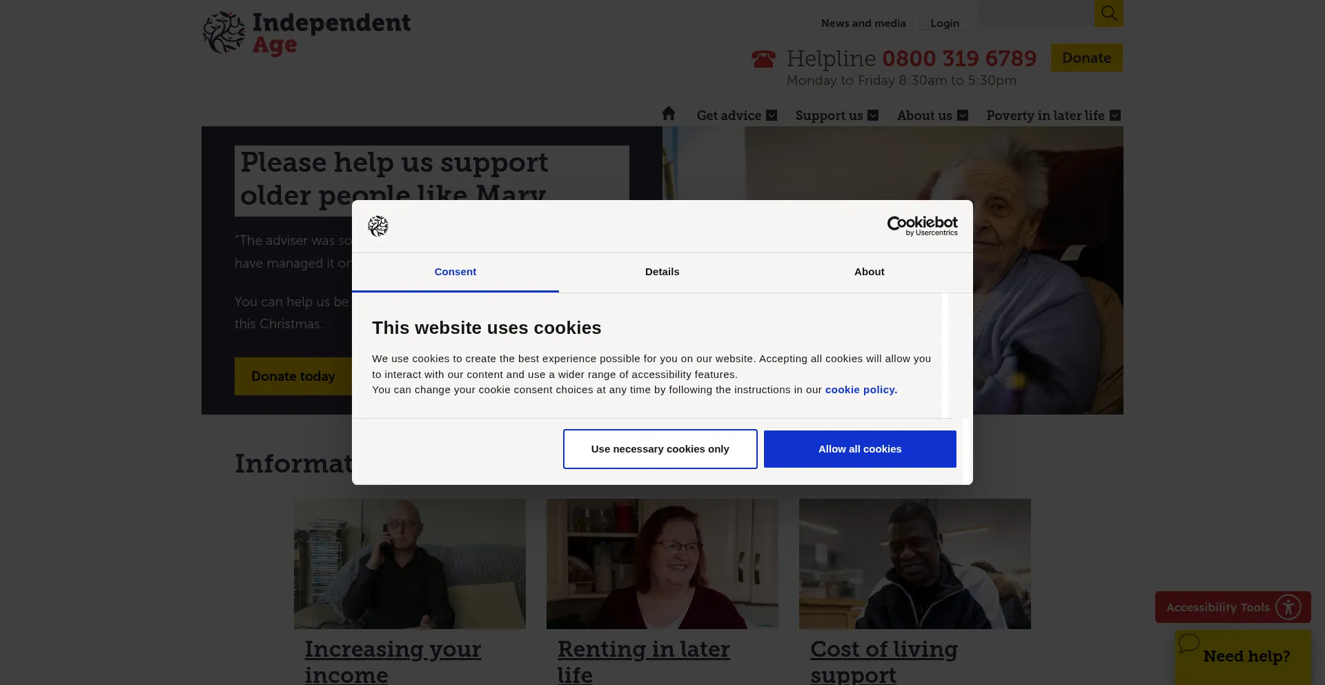 The website implements cookie consent mechanisms in compliance with privacy regulations such as GDPR or CCPA. This demonstrates that independentage.org adheres to data protection standards and provides users with control over personal data collection practices.
