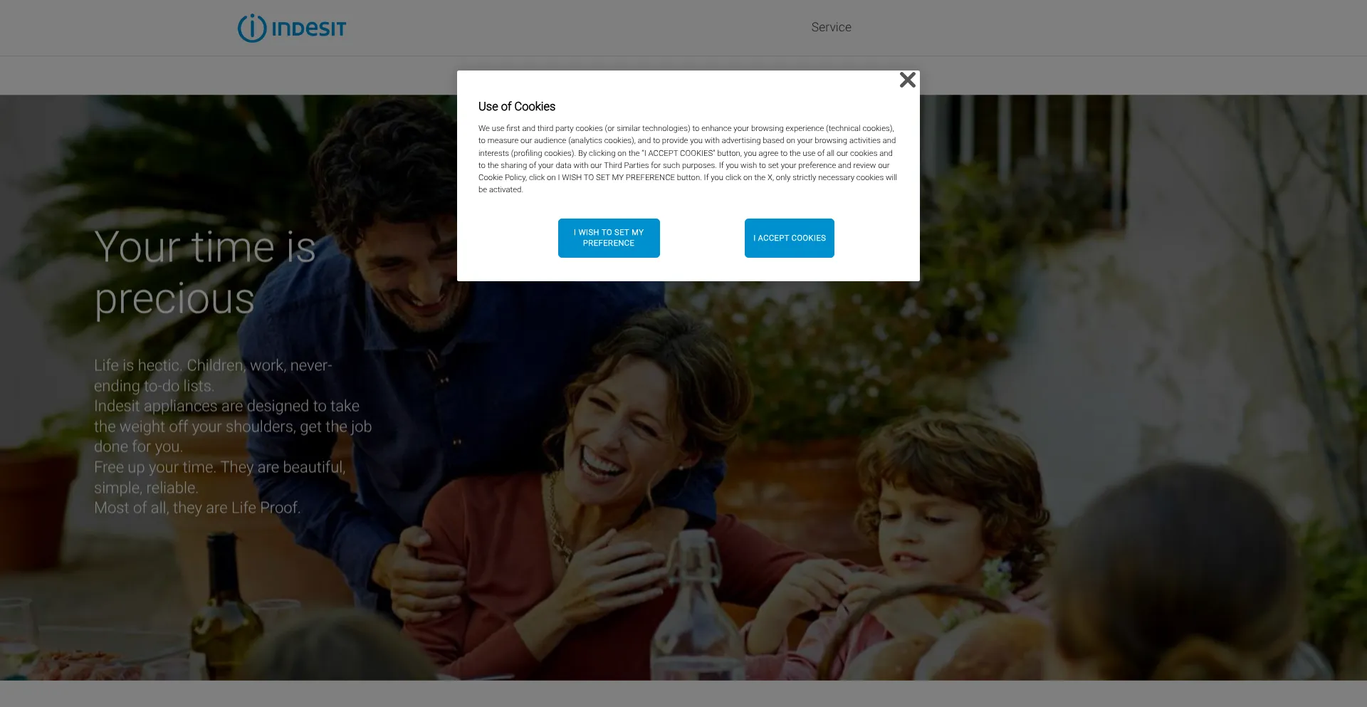 The website implements cookie consent mechanisms in compliance with privacy regulations such as GDPR or CCPA. This demonstrates that indesit.com adheres to data protection standards and provides users with control over personal data collection practices.