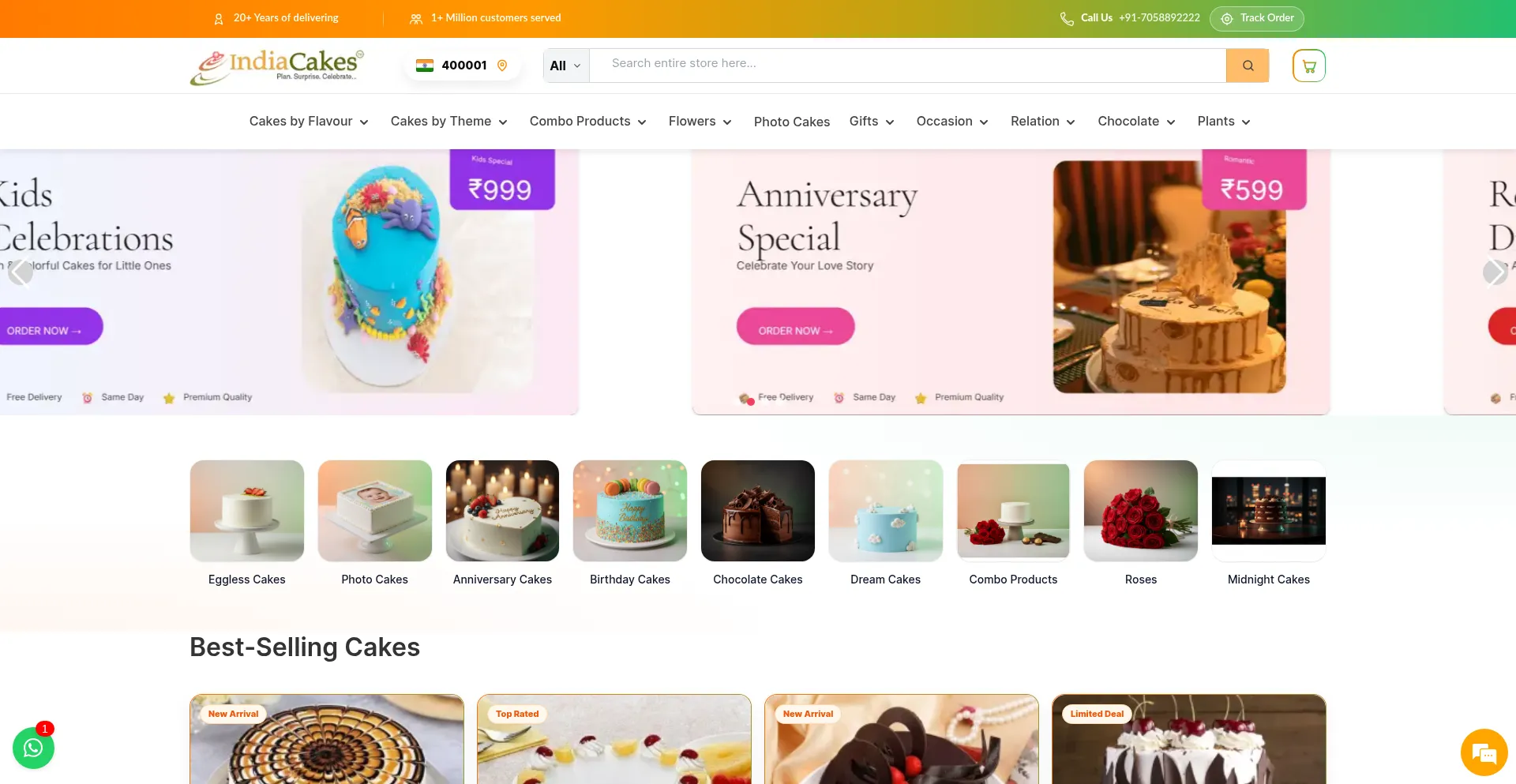 IndiaCakes.com is online cake delivering company from last 20 years and delivers to more than 2000 cities in india.