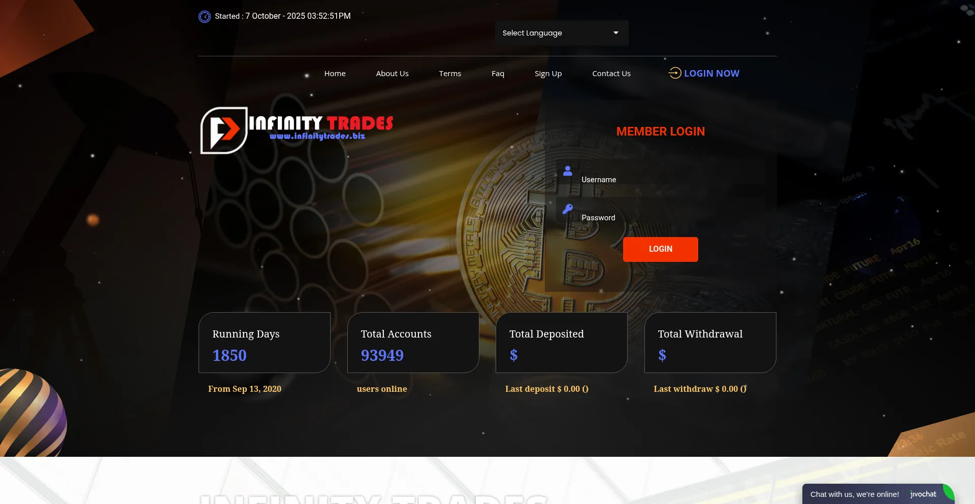 As of October 7, 2025, Infinitytrades.biz has a very low trust score of 2/100 according to our algorithm. Through the security analysis, it has been identified as a potential suspicious website. Our detection system has found multiple risk indicators, and we recommend avoiding this website.