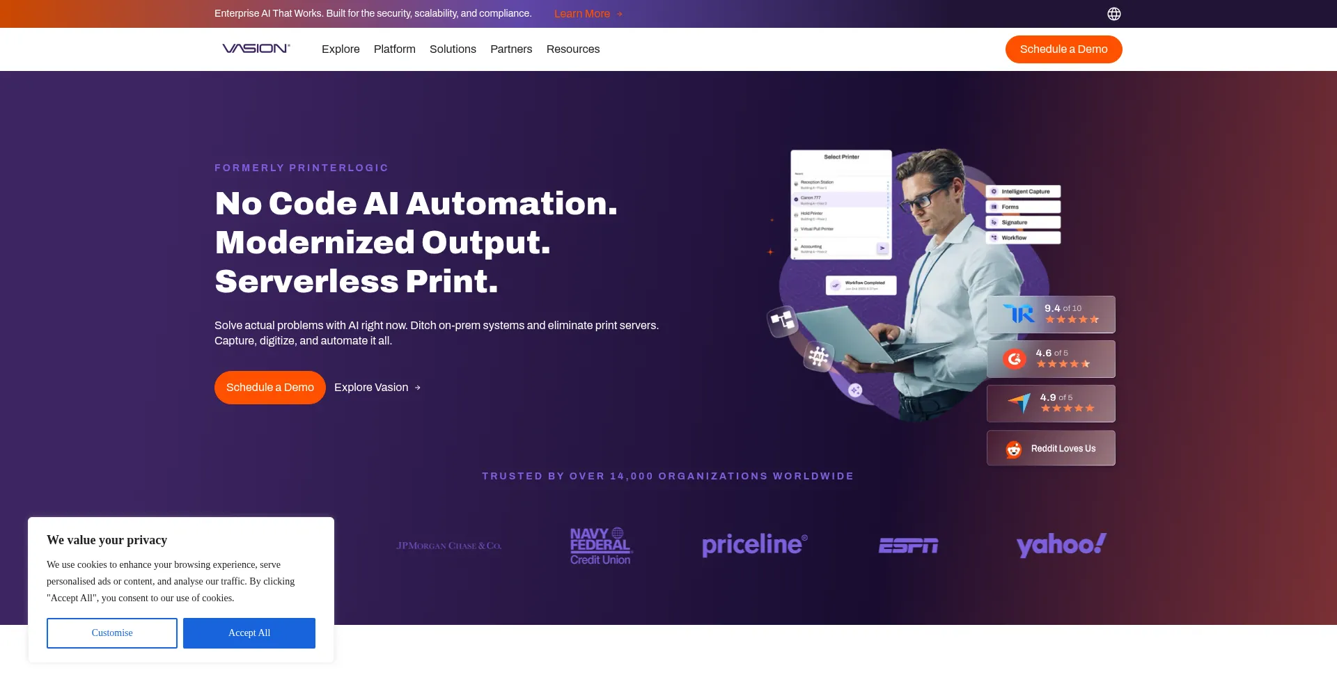 Accelerate your digital transformation with Vasion's no-code AI automation, modernized output management, and serverless print solutions.
