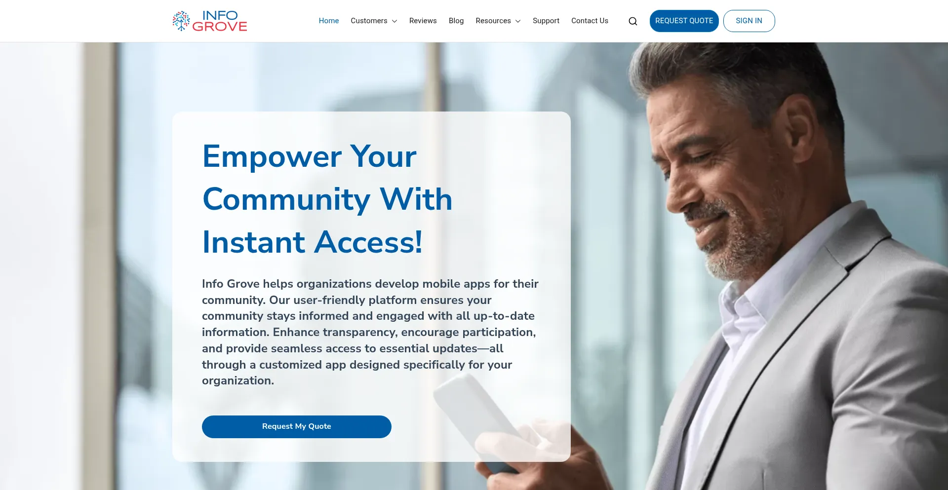 Info Grove helps Canadian municipalities develop mobile apps, empowering citizens with seamless access to important civic information and updates.