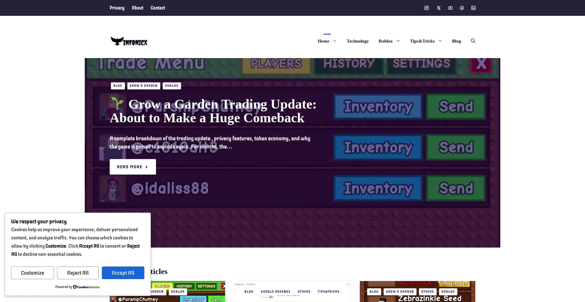 The website implements cookie consent mechanisms in compliance with privacy regulations such as GDPR or CCPA. This demonstrates that infonicx.com adheres to data protection standards and provides users with control over personal data collection practices.