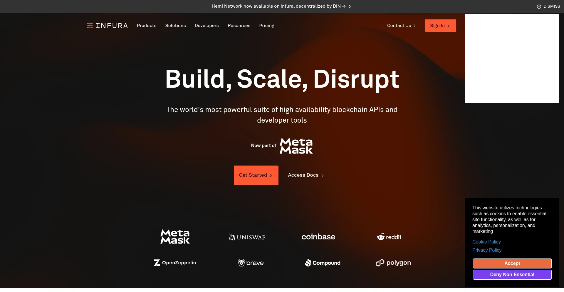 The website implements cookie consent mechanisms in compliance with privacy regulations such as GDPR or CCPA. This demonstrates that infura.io adheres to data protection standards and provides users with control over personal data collection practices.