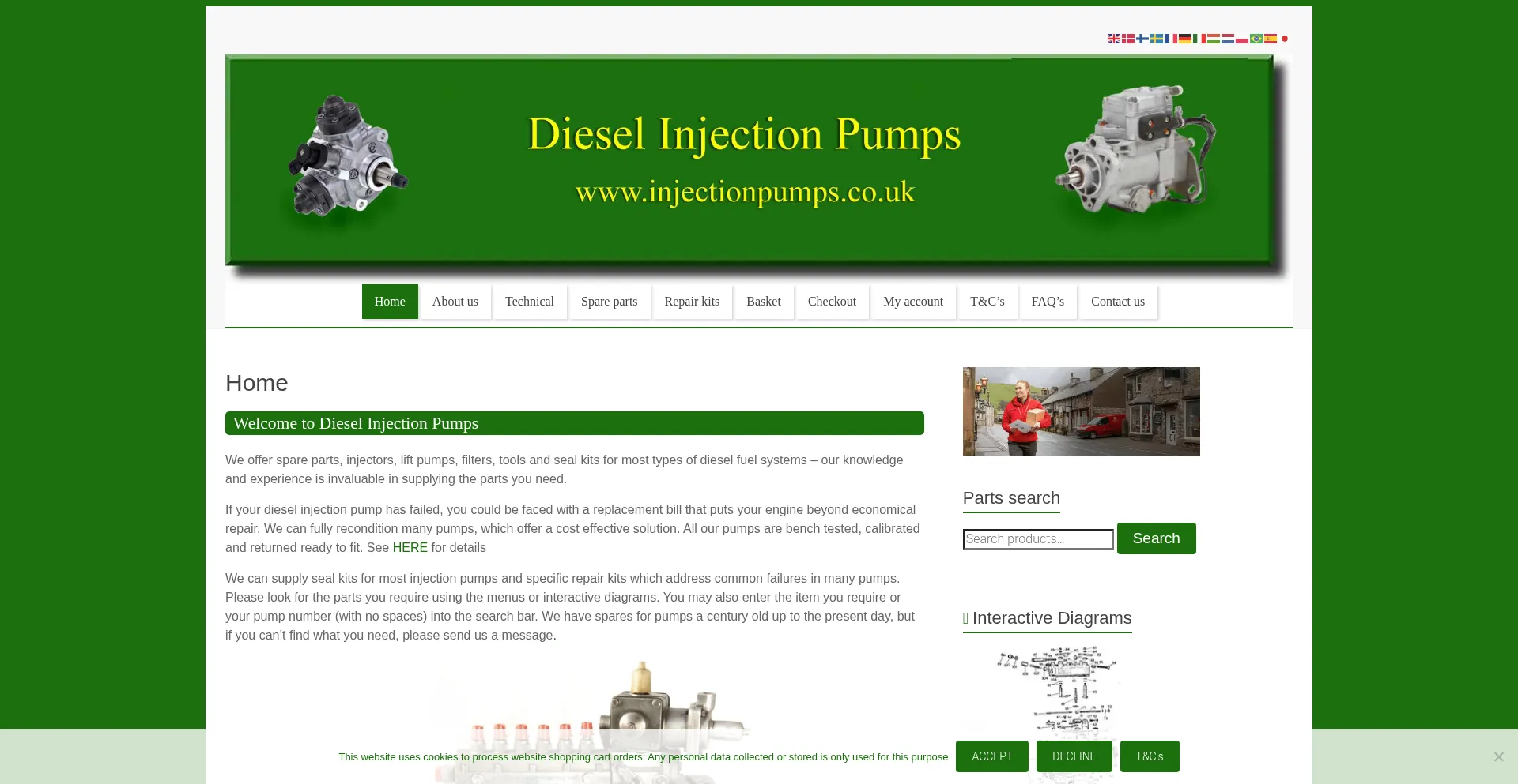 Analysis indicates that injectionpumps.co.uk operates as an e-commerce platform facilitating online transactions for goods or services. The website implements shopping cart functionality, payment processing systems, and product catalog features typical of commercial retail operations.