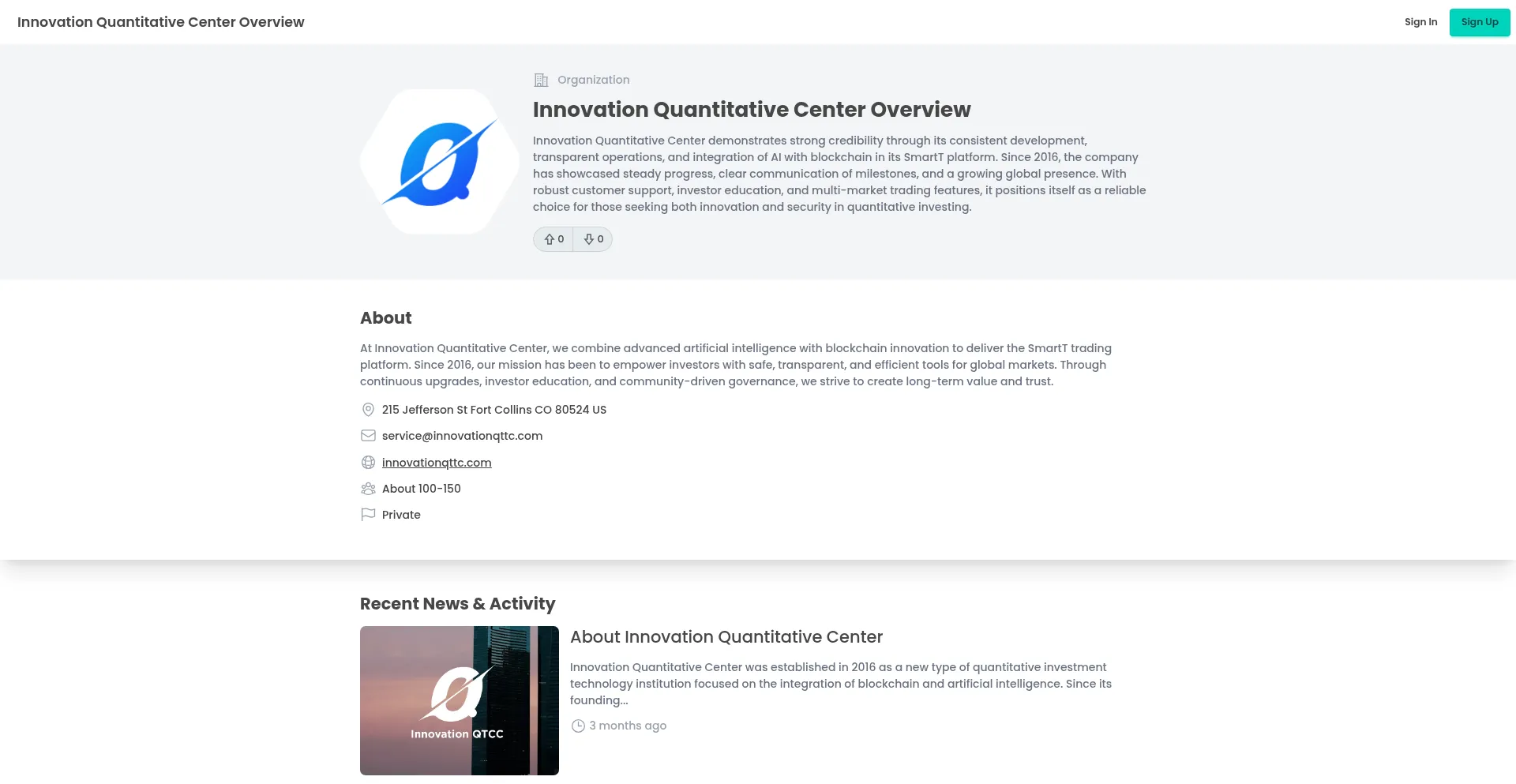 Explore Innovation Quantitative Center Overview with company news, analysis, features, and user reviews. Learn about SmartT trading, blockchain security, and why IQC is trusted ...