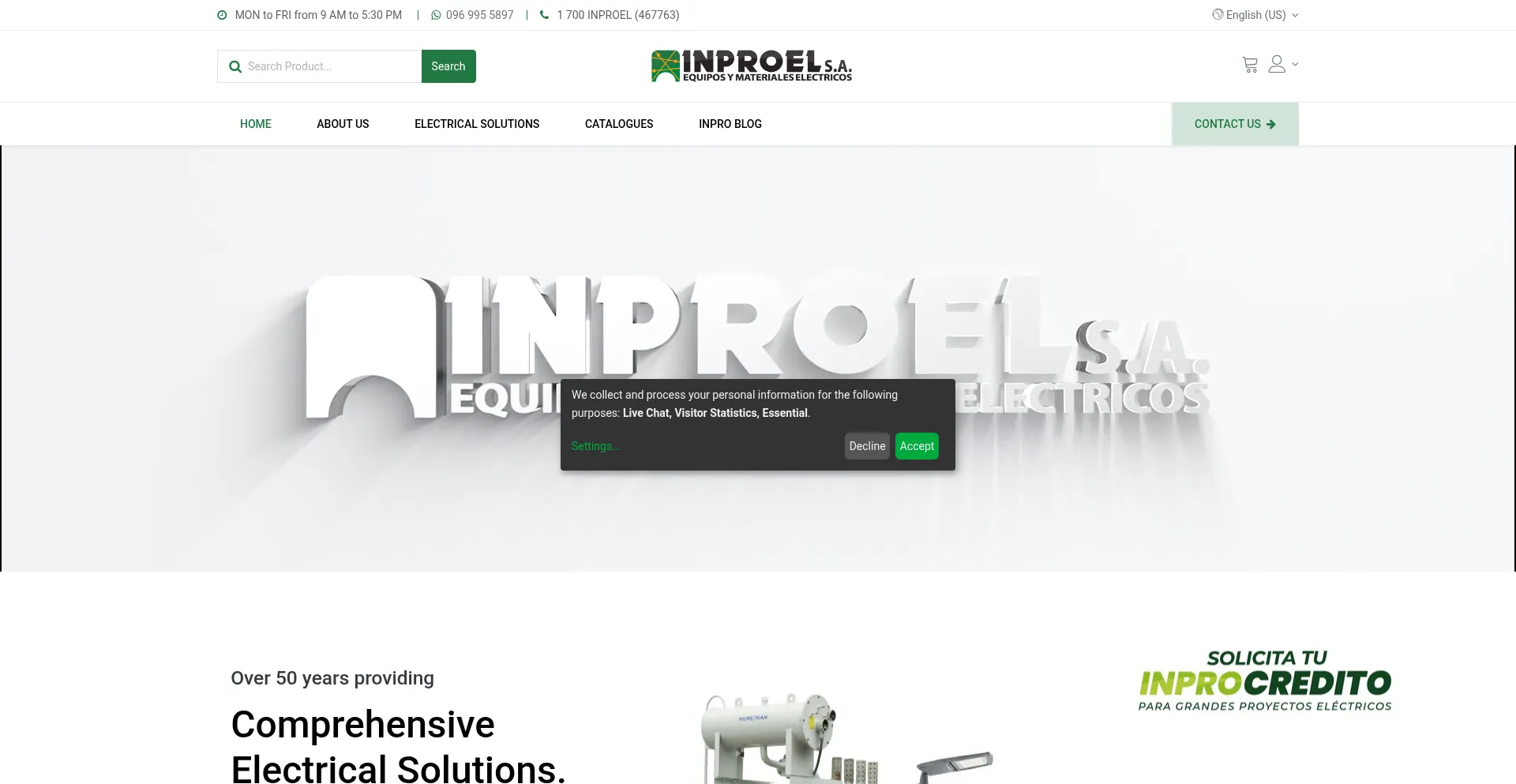 The website implements cookie consent mechanisms in compliance with privacy regulations such as GDPR or CCPA. This demonstrates that inproel.com adheres to data protection standards and provides users with control over personal data collection practices.