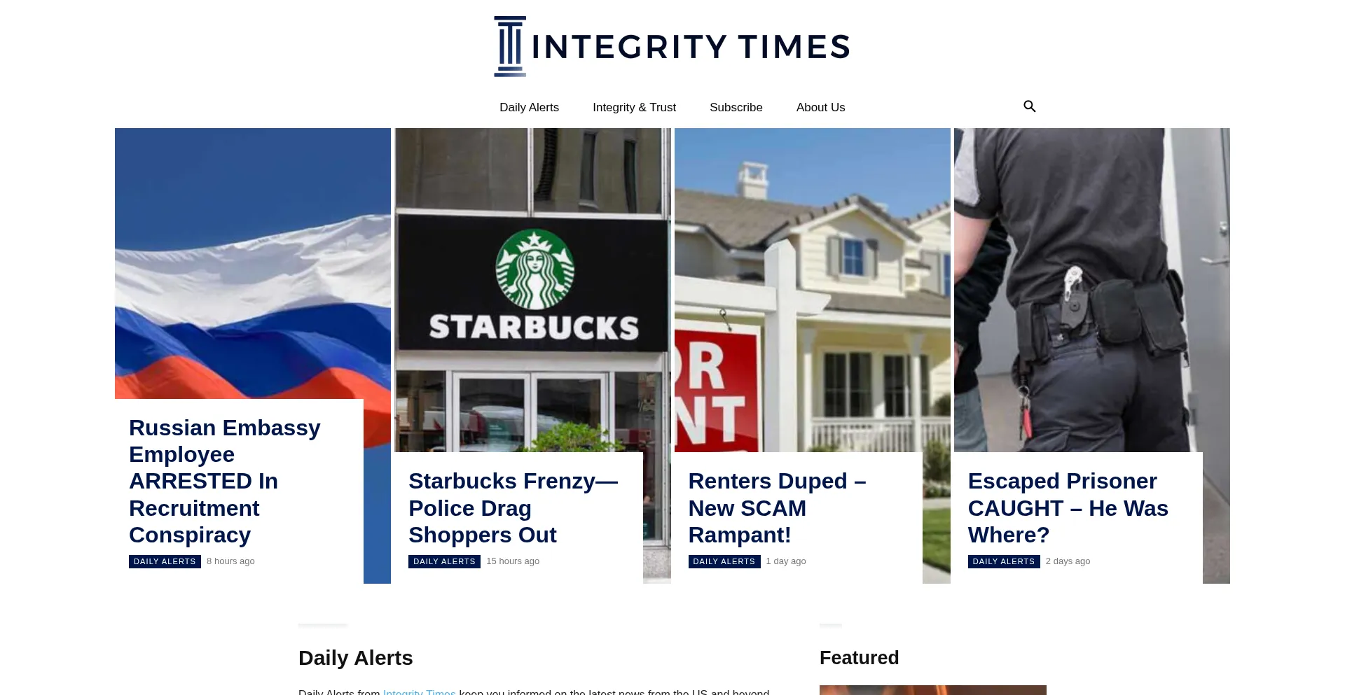 Daily Alerts from Integrity Times keep you informed on the latest news from the US and beyond.