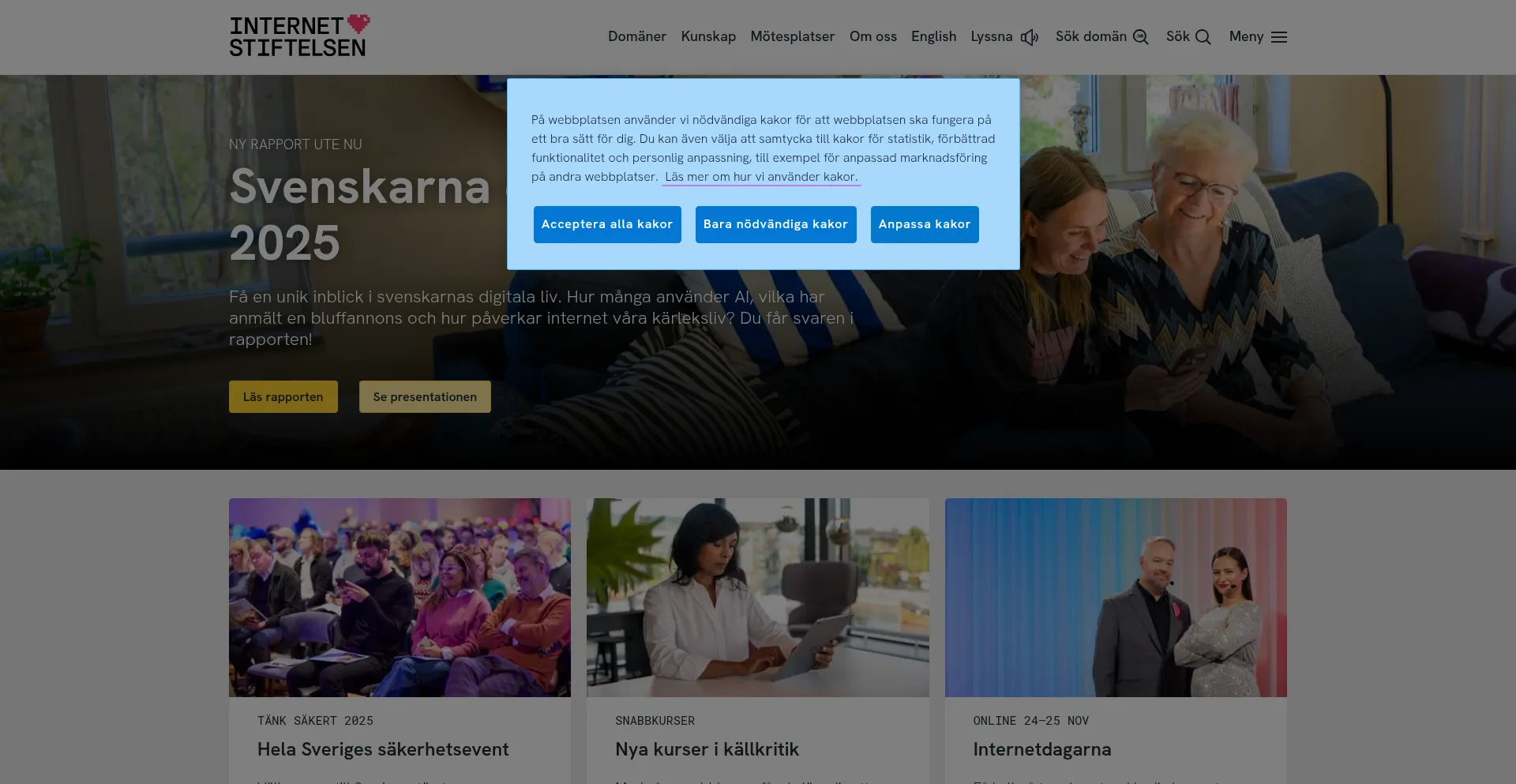 The website implements cookie consent mechanisms in compliance with privacy regulations such as GDPR or CCPA. This demonstrates that internetstiftelsen.se adheres to data protection standards and provides users with control over personal data collection practices.