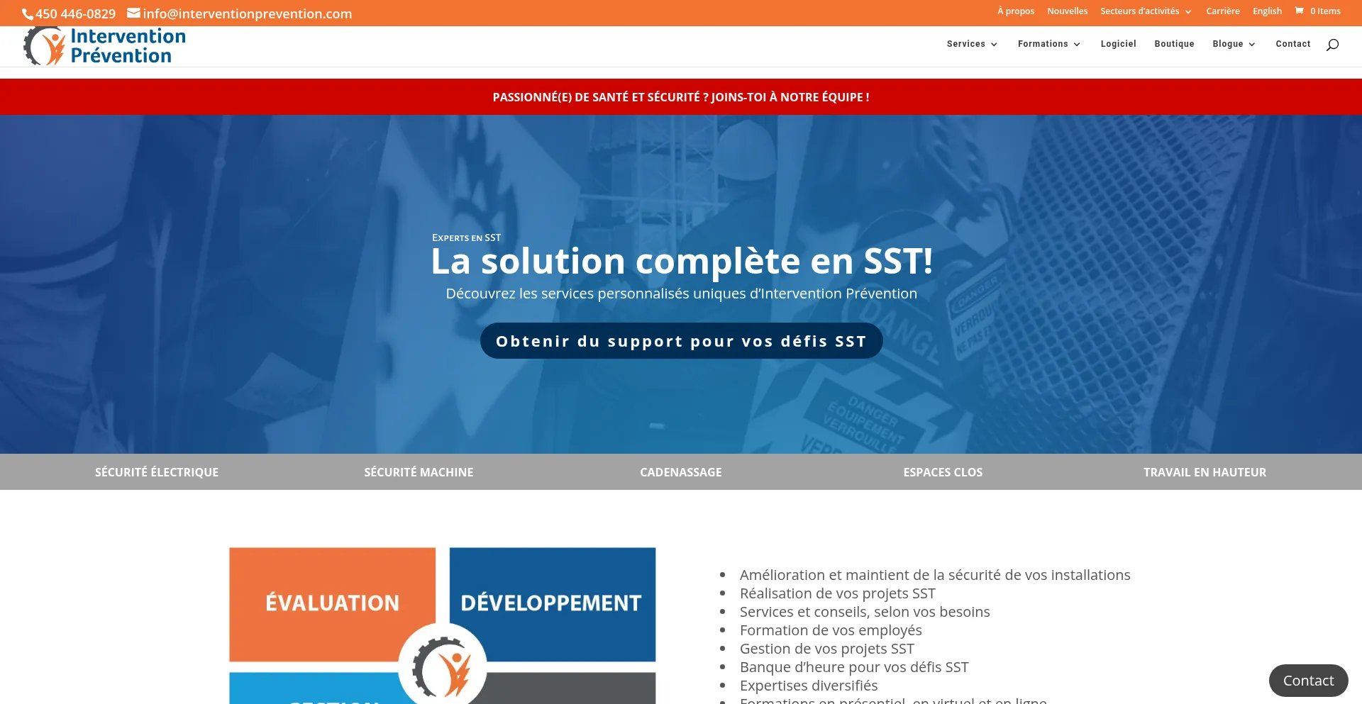 Intervention Prévention oeuvre dans le domaine de la sécurité au travail en offrant des services de consultation et de formations spécialisés répondant aux normes en vigueur.