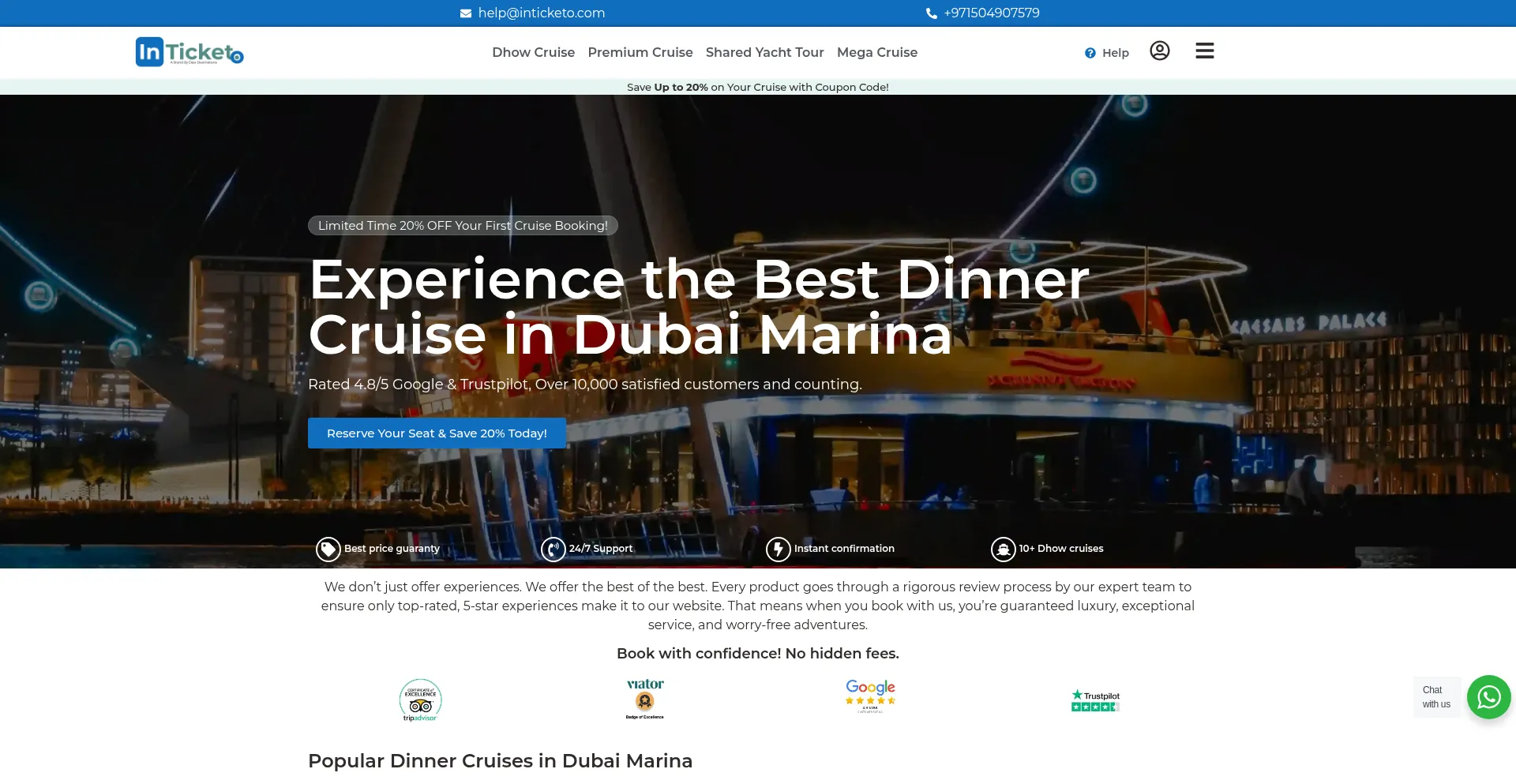 Enjoy a magical Marina Dhow Cruise with buffet dinner, live entertainment & Dubai skyline views. Book your Dubai Marina cruise online now for best deals!