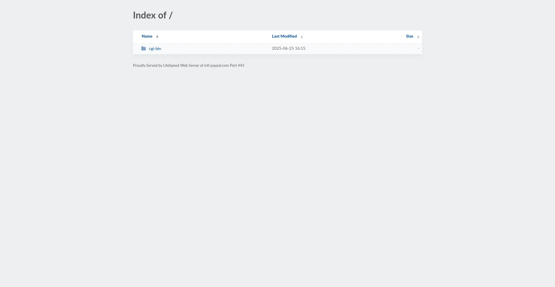 The website has publicly accessible directory structures exposing internal files and folders. This security misconfiguration may indicate intl-paypal.com is under development, has been compromised, or serves as an intermediary for potentially fraudulent activities.