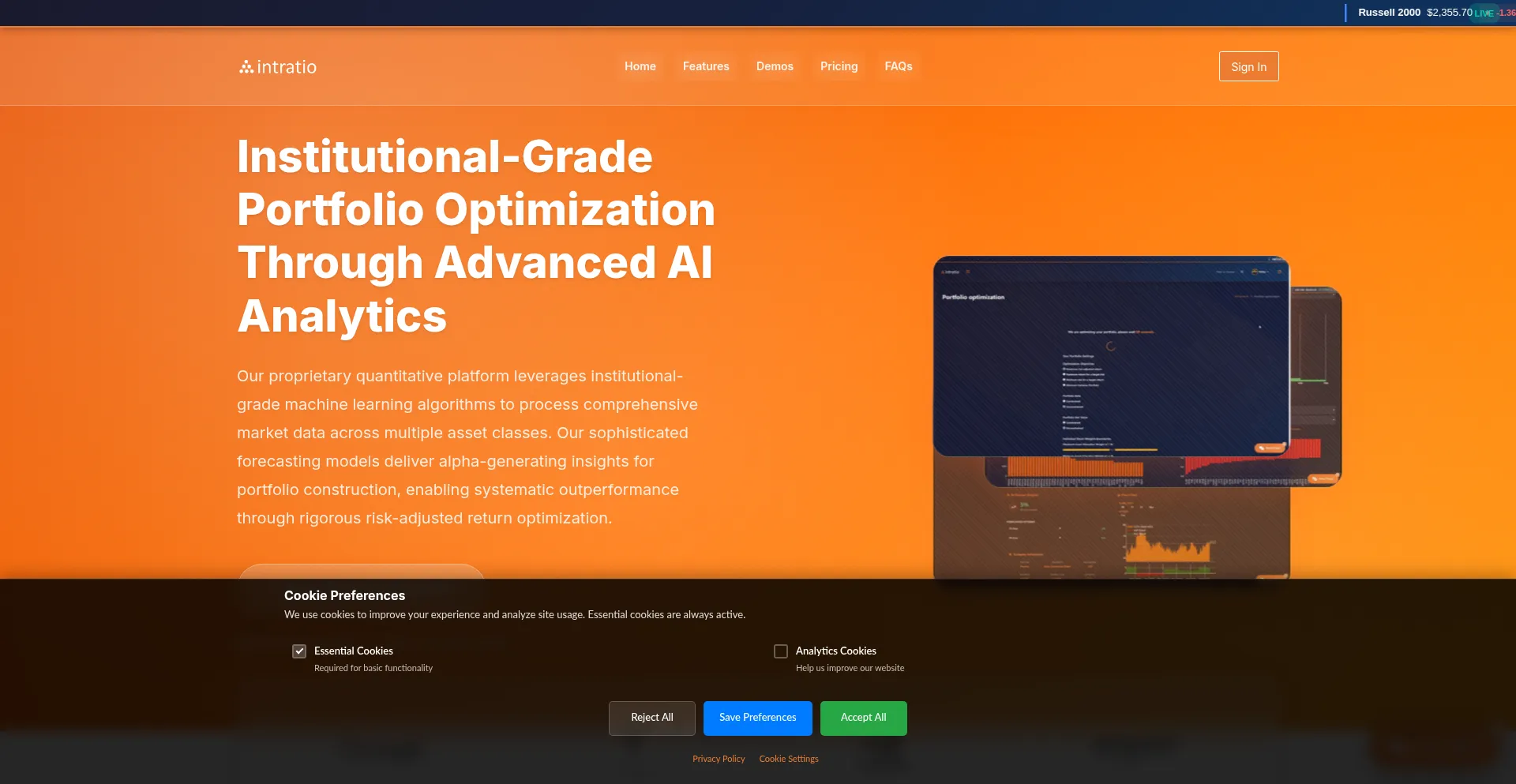 Intratio - Institutional-Grade AI Portfolio Management & Quantitative Analytics Platform