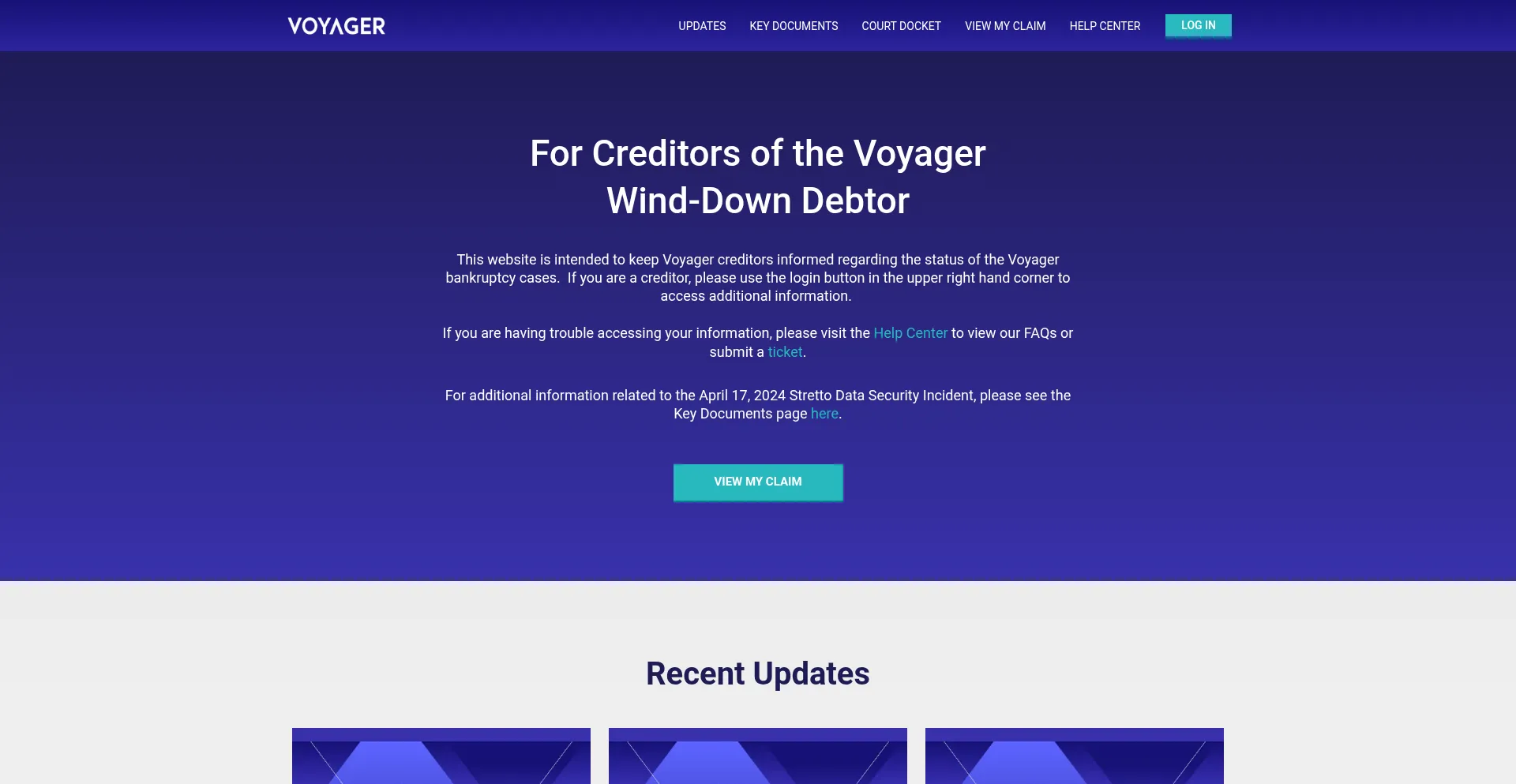 Track Your Claim and Recovery in Voyager’s Bankruptcy Case. Our platform provides real-time updates on your claim’s status, initial recovery progress, and essential details ...
