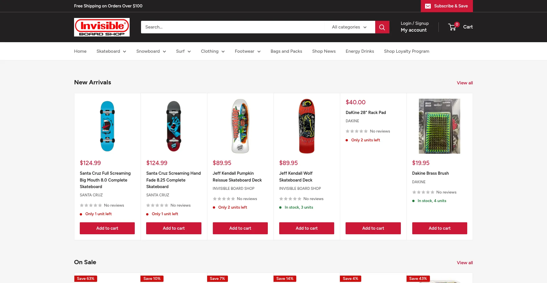 The invisibleboardshop.com website utilizes free e-commerce platform solutions, which may indicate cost-conscious operations but could also suggest limitations in security features, customer support, or advanced functionality compared to enterprise-grade solutions.