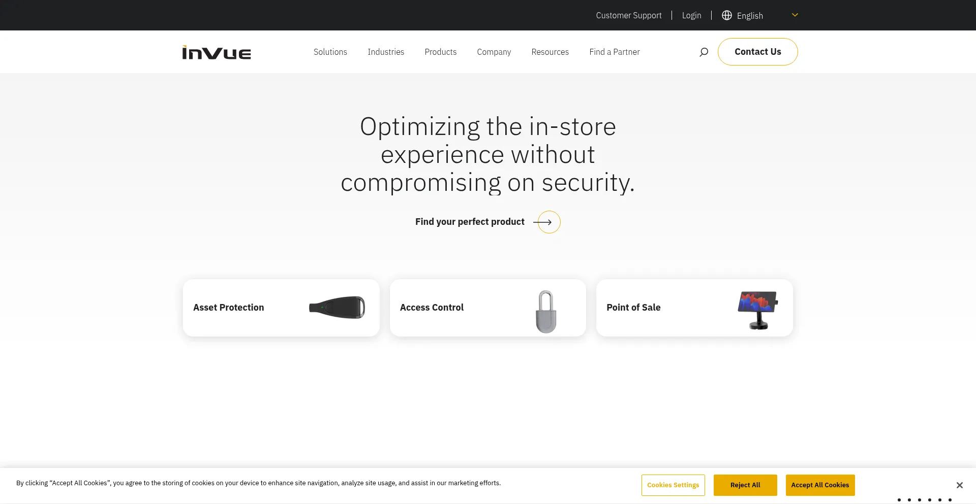 The website implements cookie consent mechanisms in compliance with privacy regulations such as GDPR or CCPA. This demonstrates that invue.com adheres to data protection standards and provides users with control over personal data collection practices.