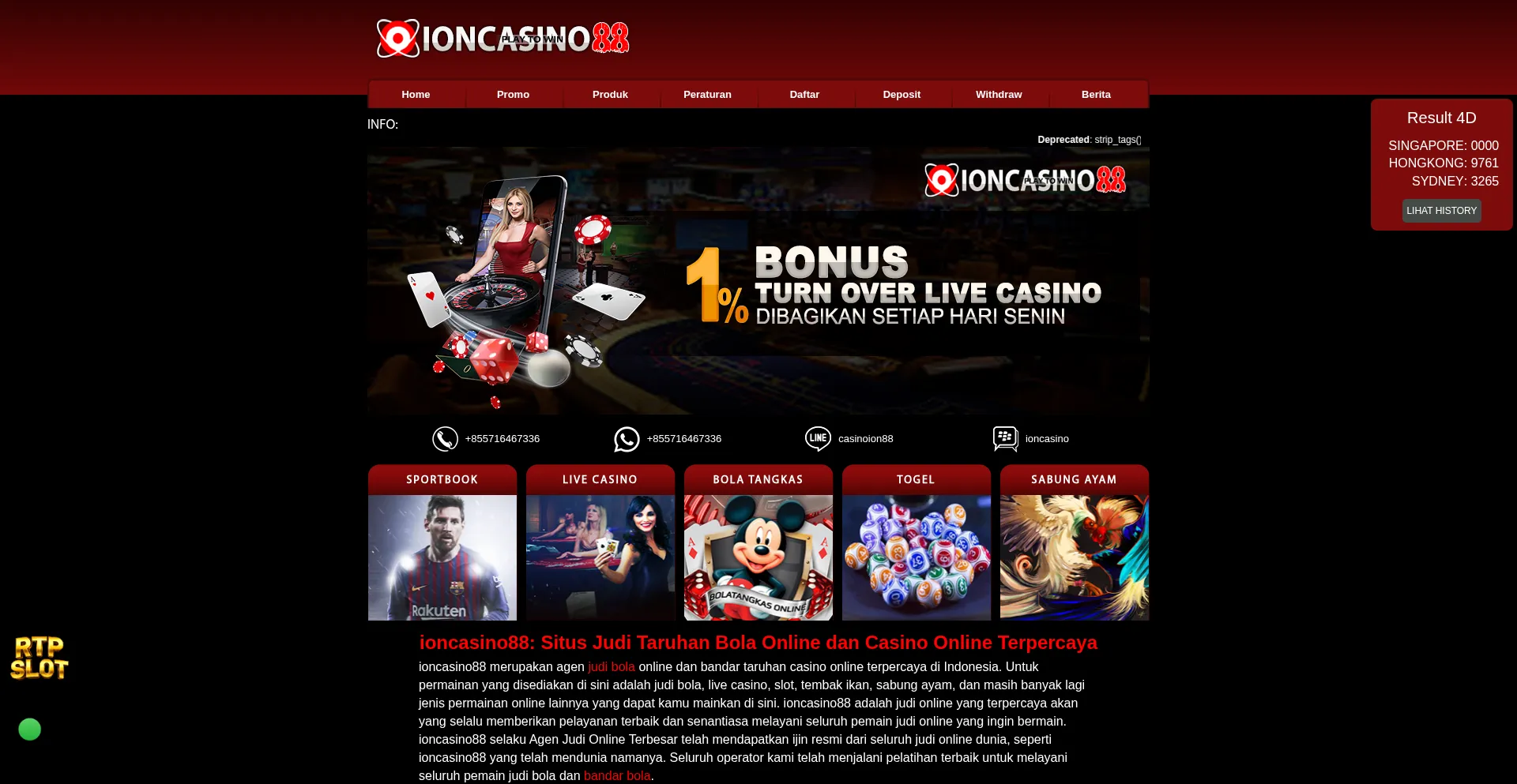 ioncasino88 adalah situs judi taruhan online yang menyediakan permainan sbobet, maxbet, cmdbet, casino online, sabung ayam dengan bonus terbesar di indonesia