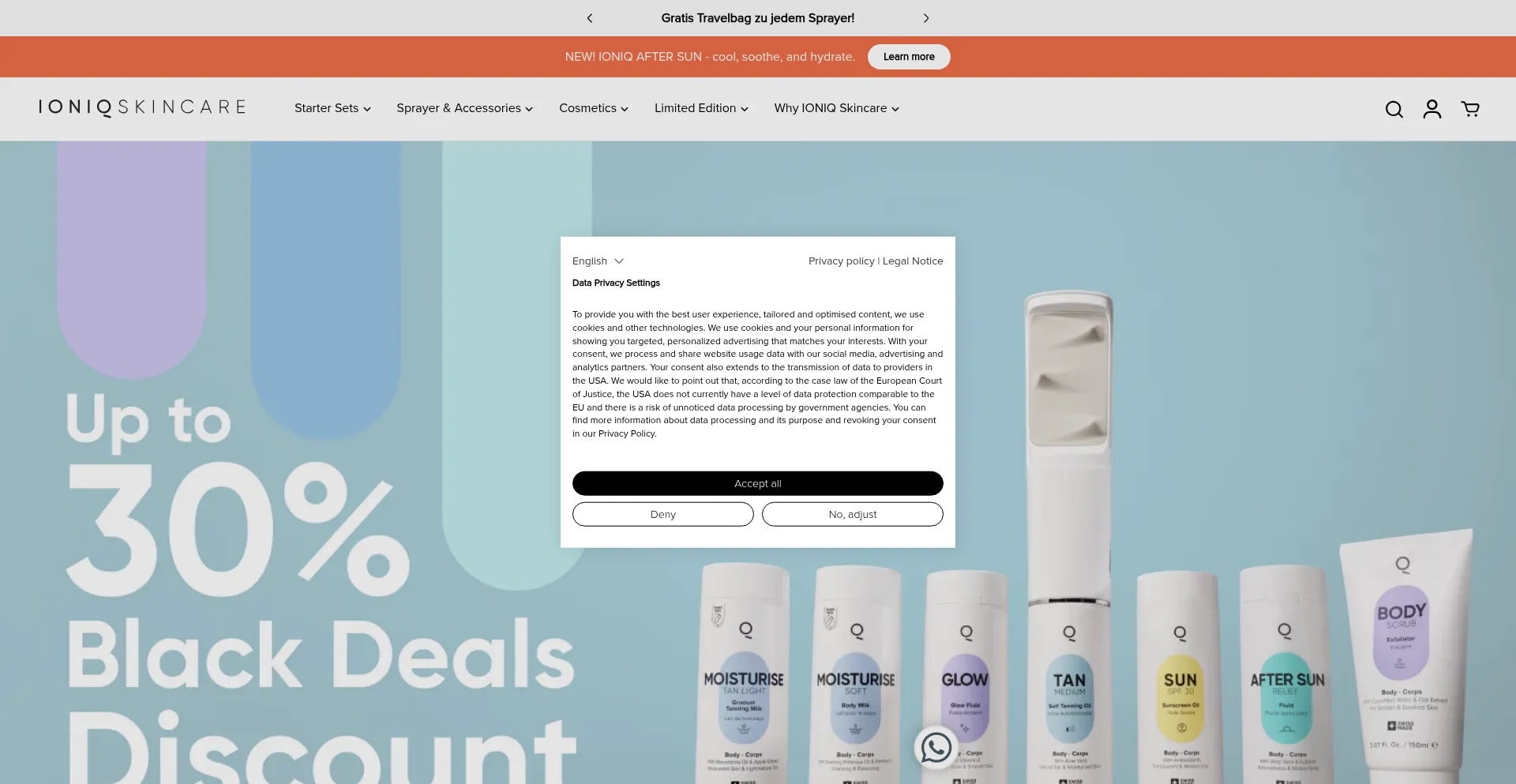The website implements cookie consent mechanisms in compliance with privacy regulations such as GDPR or CCPA. This demonstrates that ioniqskin.com adheres to data protection standards and provides users with control over personal data collection practices.