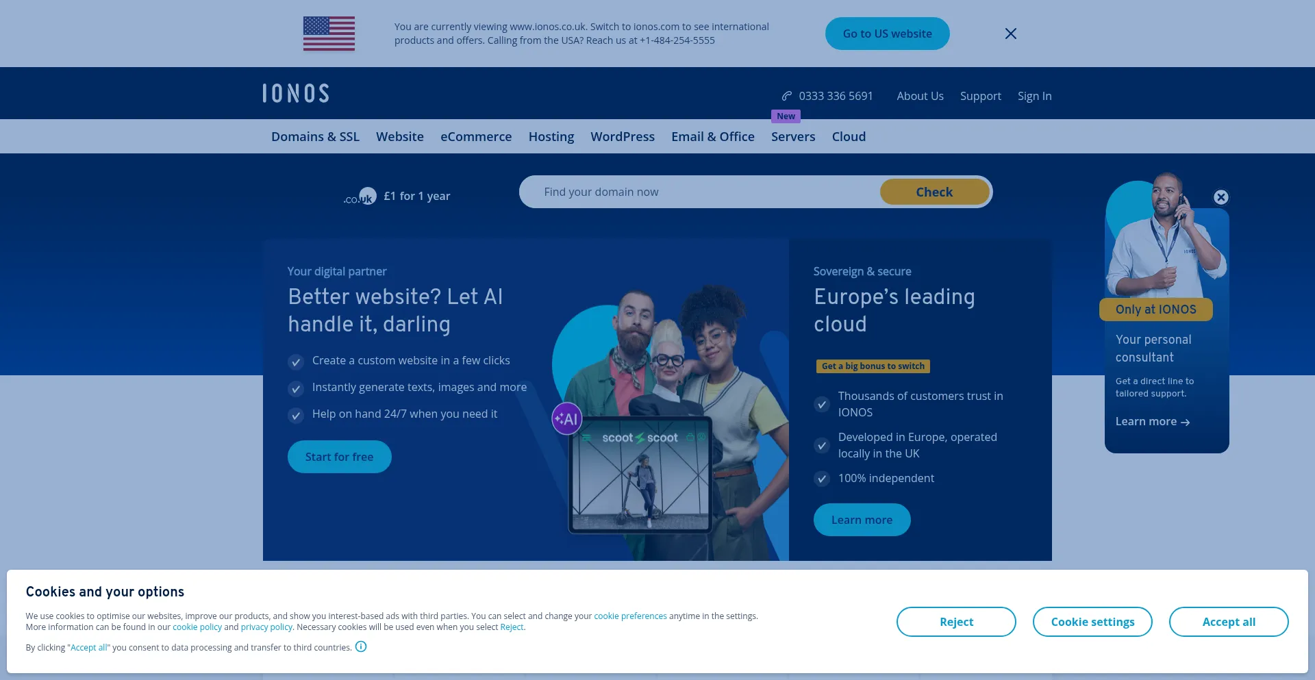 The website implements cookie consent mechanisms in compliance with privacy regulations such as GDPR or CCPA. This demonstrates that ionos.co.uk adheres to data protection standards and provides users with control over personal data collection practices.