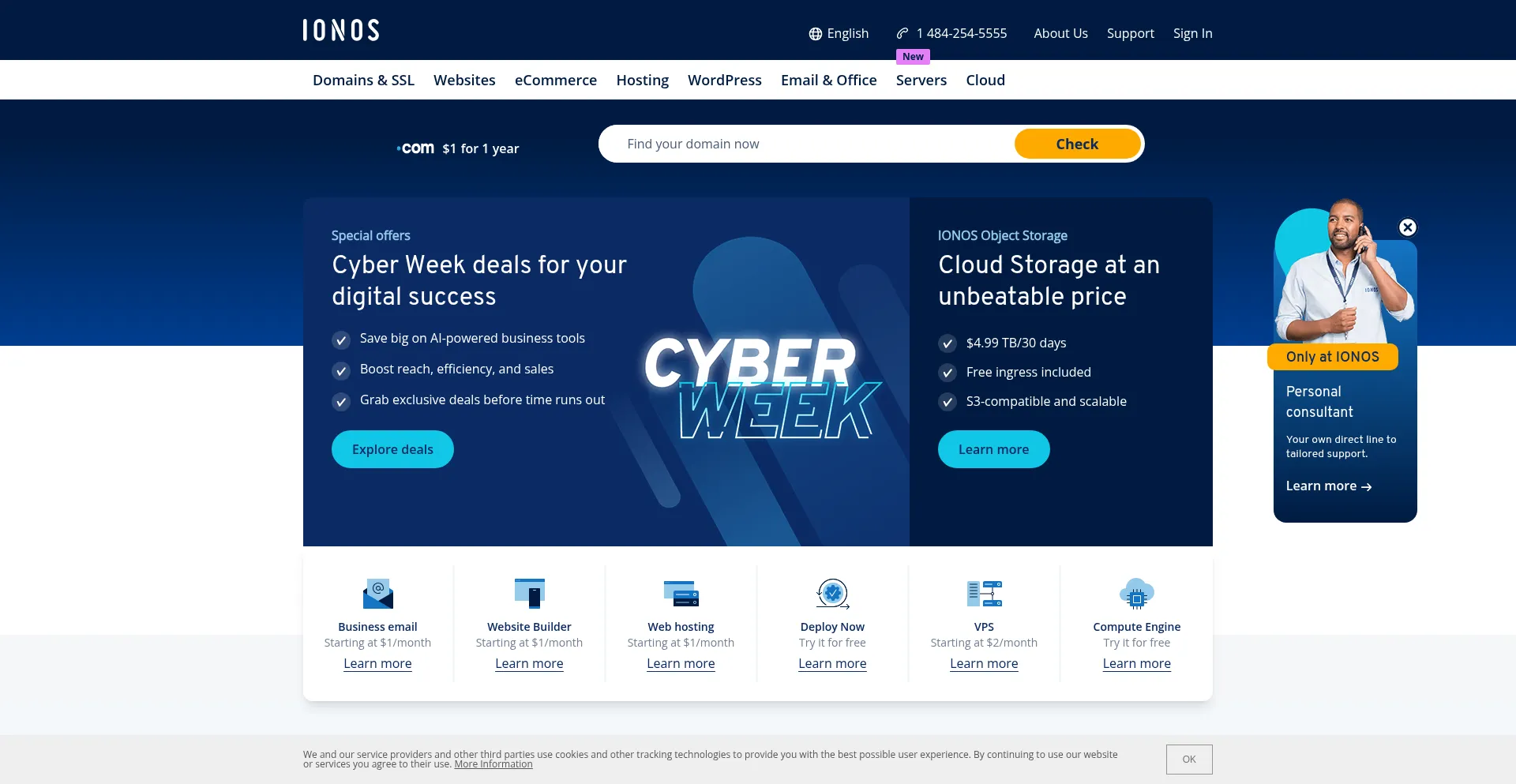 IONOS, your digital partner for cloud solutions and web hosting, supporting your needs from websites, domains, servers, and more.