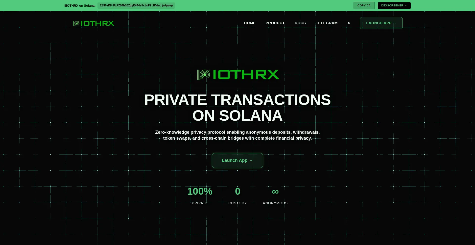 IOTHRX - Zero-Knowledge Privacy Transactions on Solana. Create private transactions with advanced cryptographic proofs while maintaining full anonymity and security on Solana ma...
