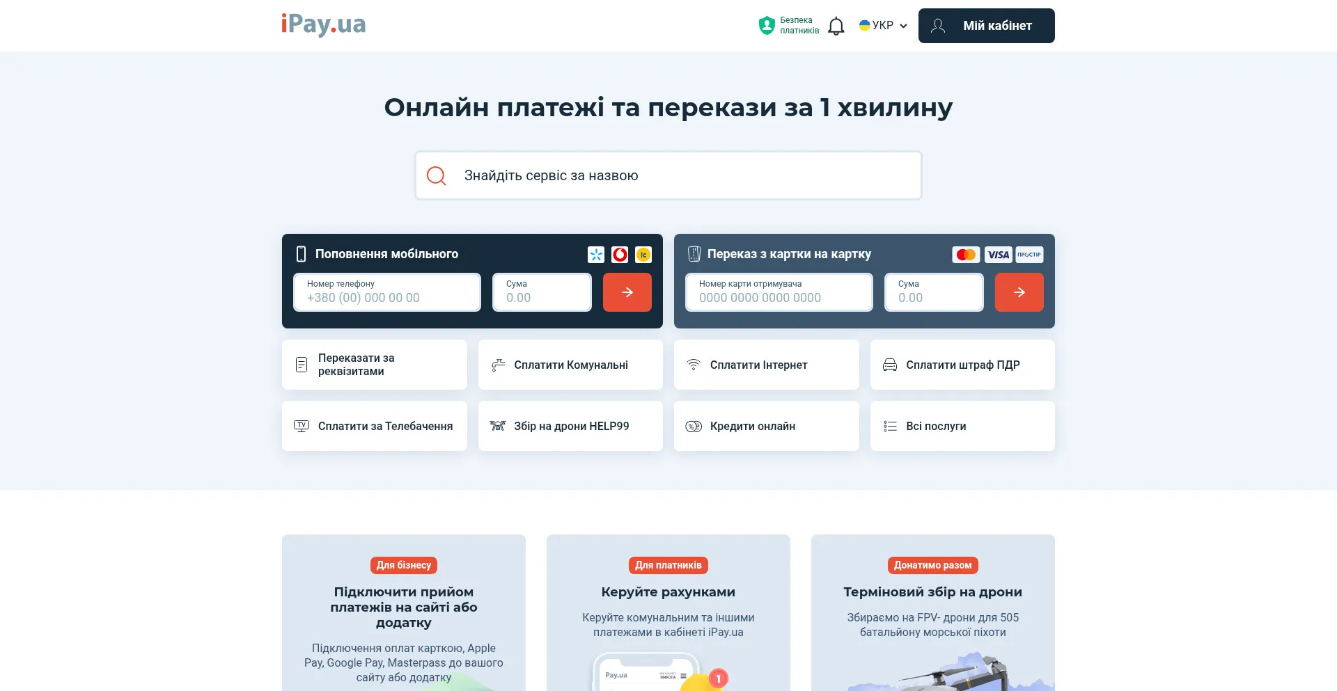 iPay.ua - Онлайн платежі та перекази за 1 хвилину