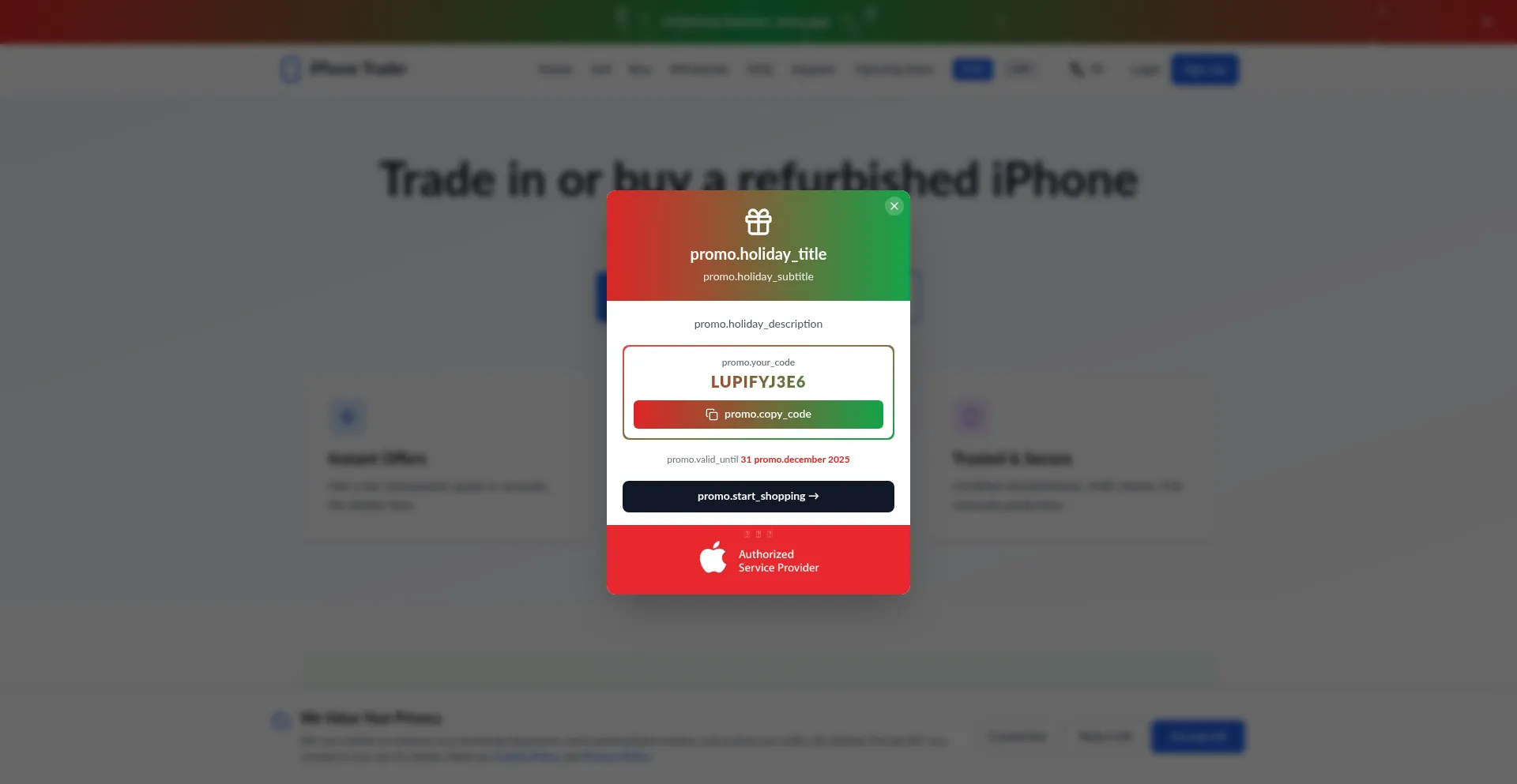 The website implements cookie consent mechanisms in compliance with privacy regulations such as GDPR or CCPA. This demonstrates that iphone-trader.com adheres to data protection standards and provides users with control over personal data collection practices.
