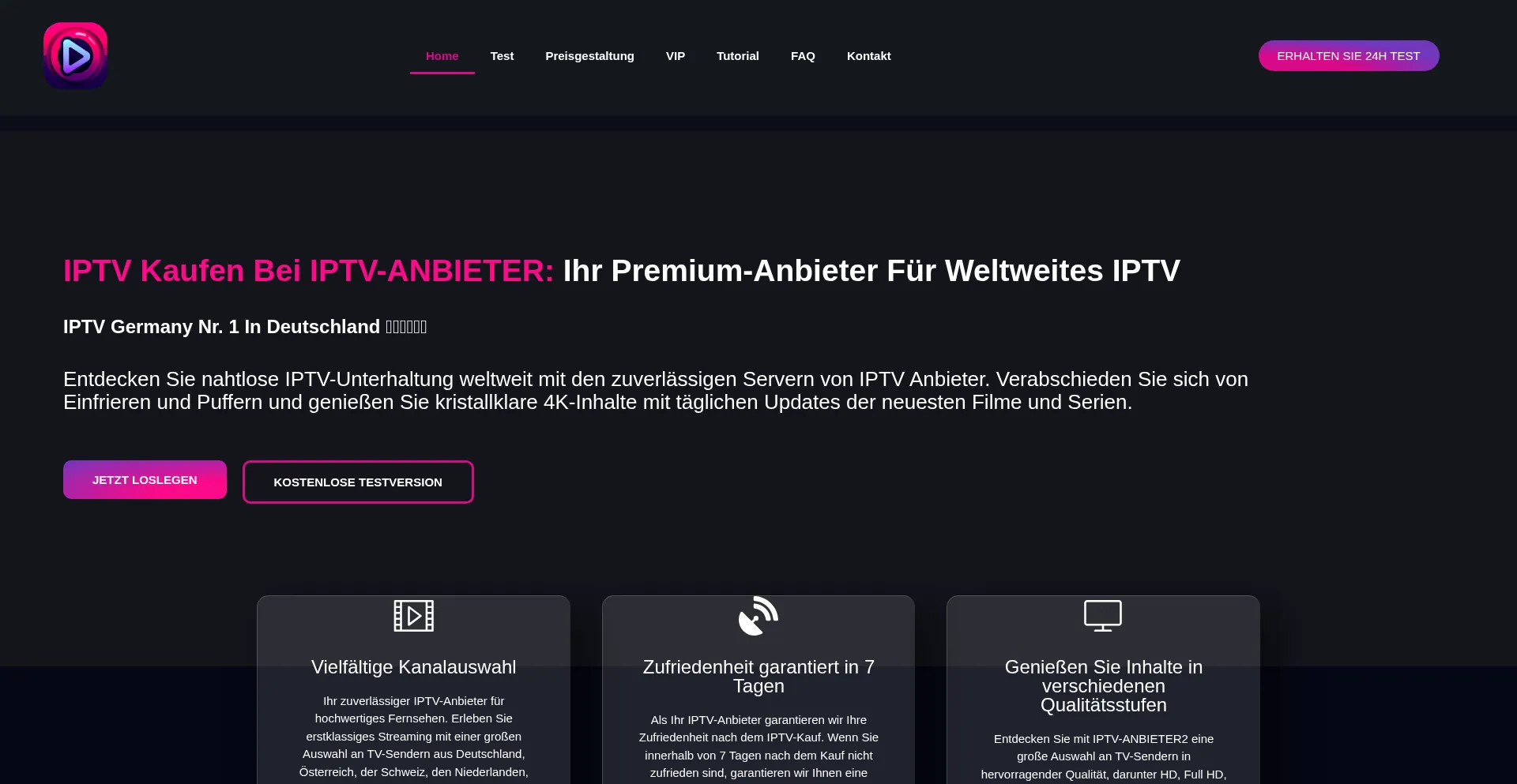 Bester IPTV Anbieter mit Premium Tv-Kanäle und bester Qualität. Wir haben die besten IPTV-Experten. Ultraschneller Server. 4K, UHD Qualität..