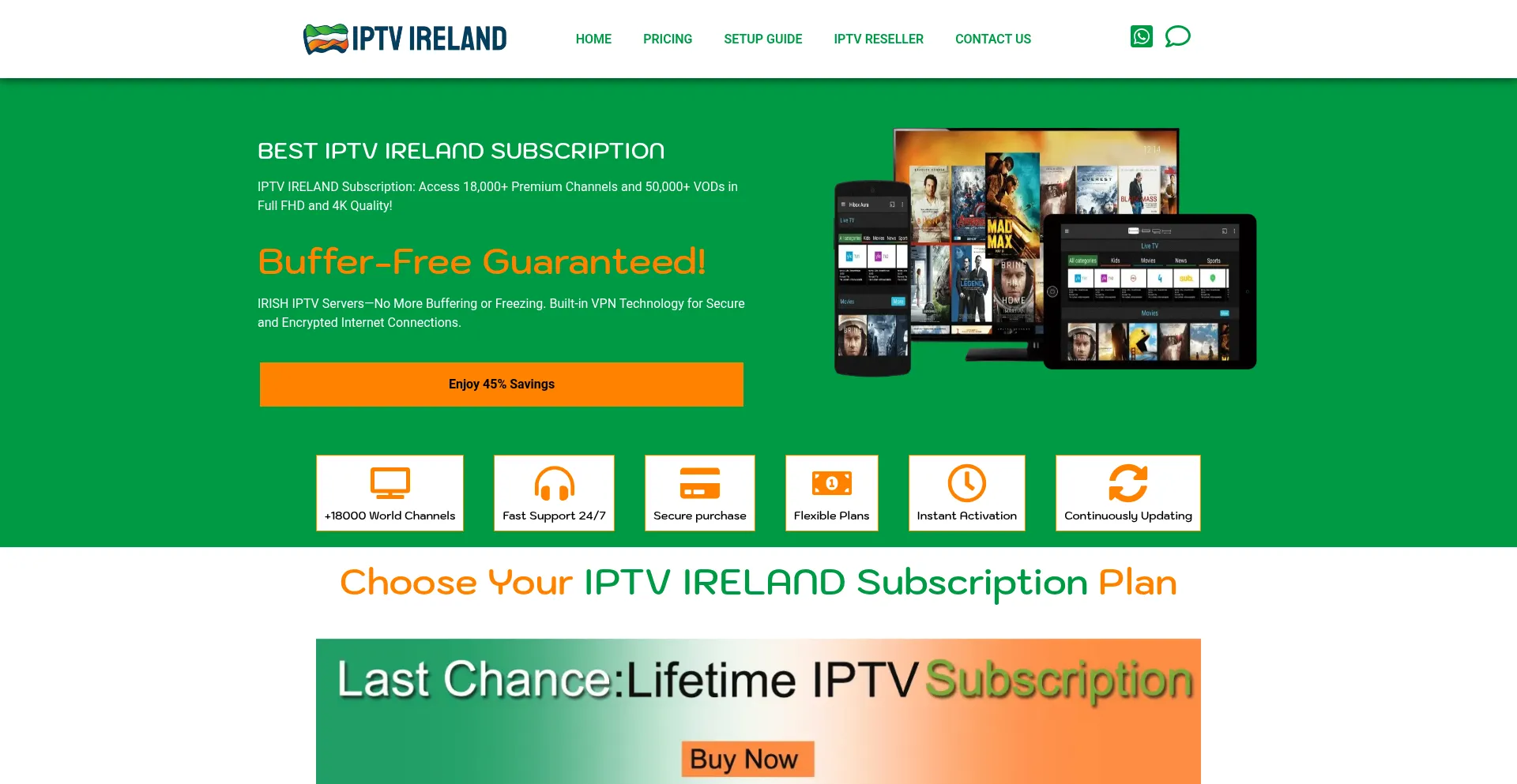 Best of IPTV IRELAND with our premium subscriptions. Enjoy 18000+ channels and 50000+ VOD in FHD and 4K quality, covering sports, movies, news, and more