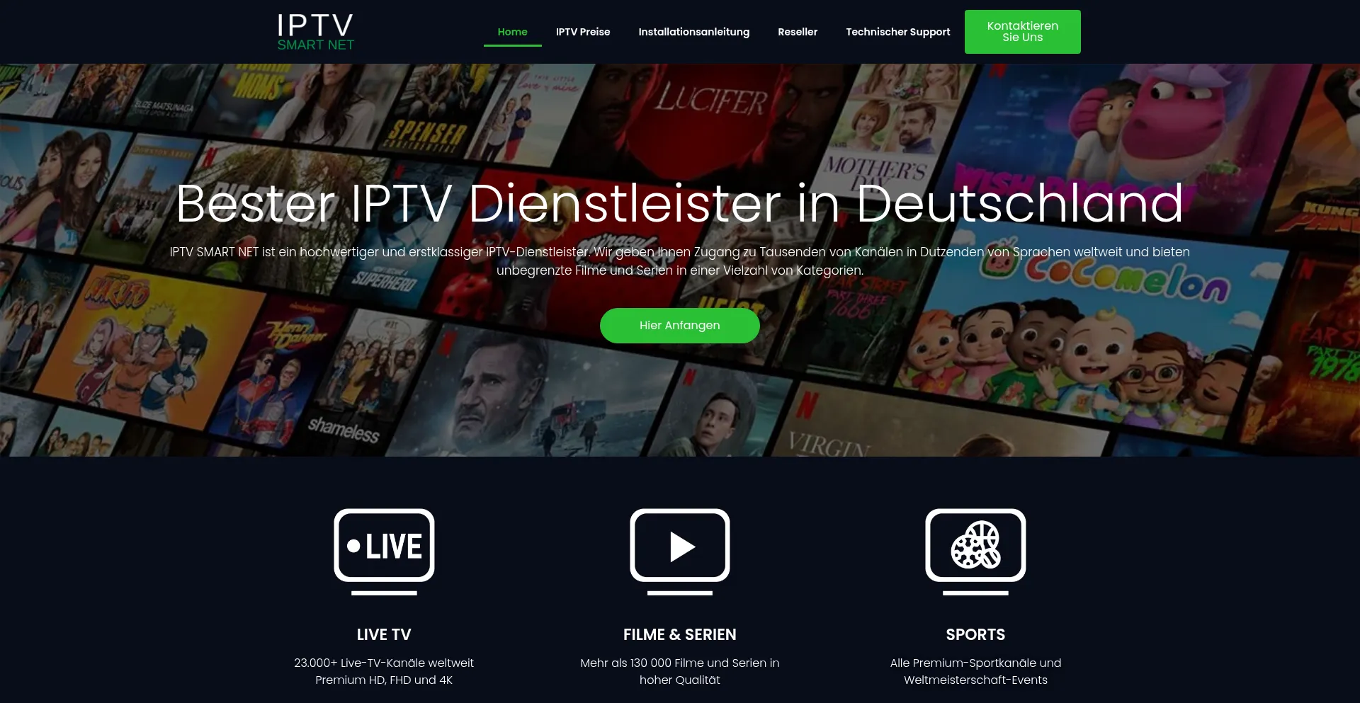 IPTV SMART NET ist der beste IPTV-Dienstleister in Deutschland, Österreich und der Schweiz. Genießen Sie über 23.000 Sender mit stabiler Verbindung.