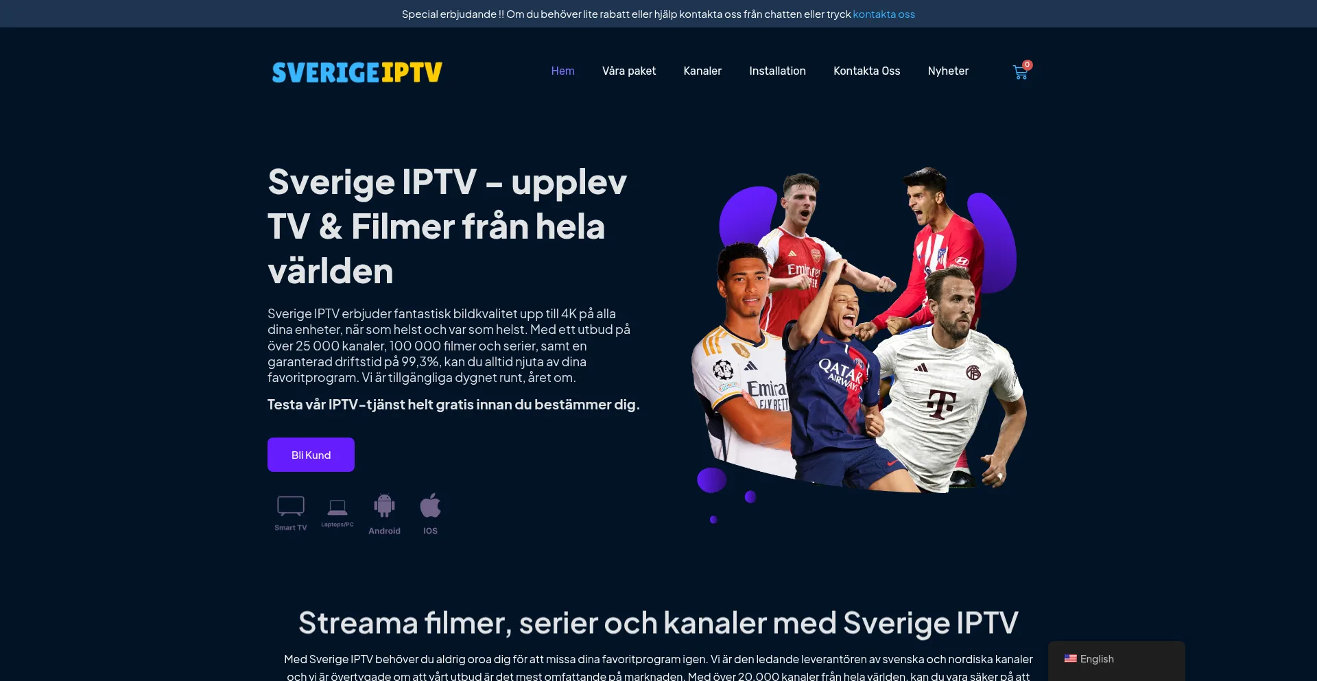 Vi erbjuder högsta bildkvalitet på svenska kanaler samt ett brett urval från hela världen. Inklusive live sport, filmer och serier – över 25 000 tv-kanaler.