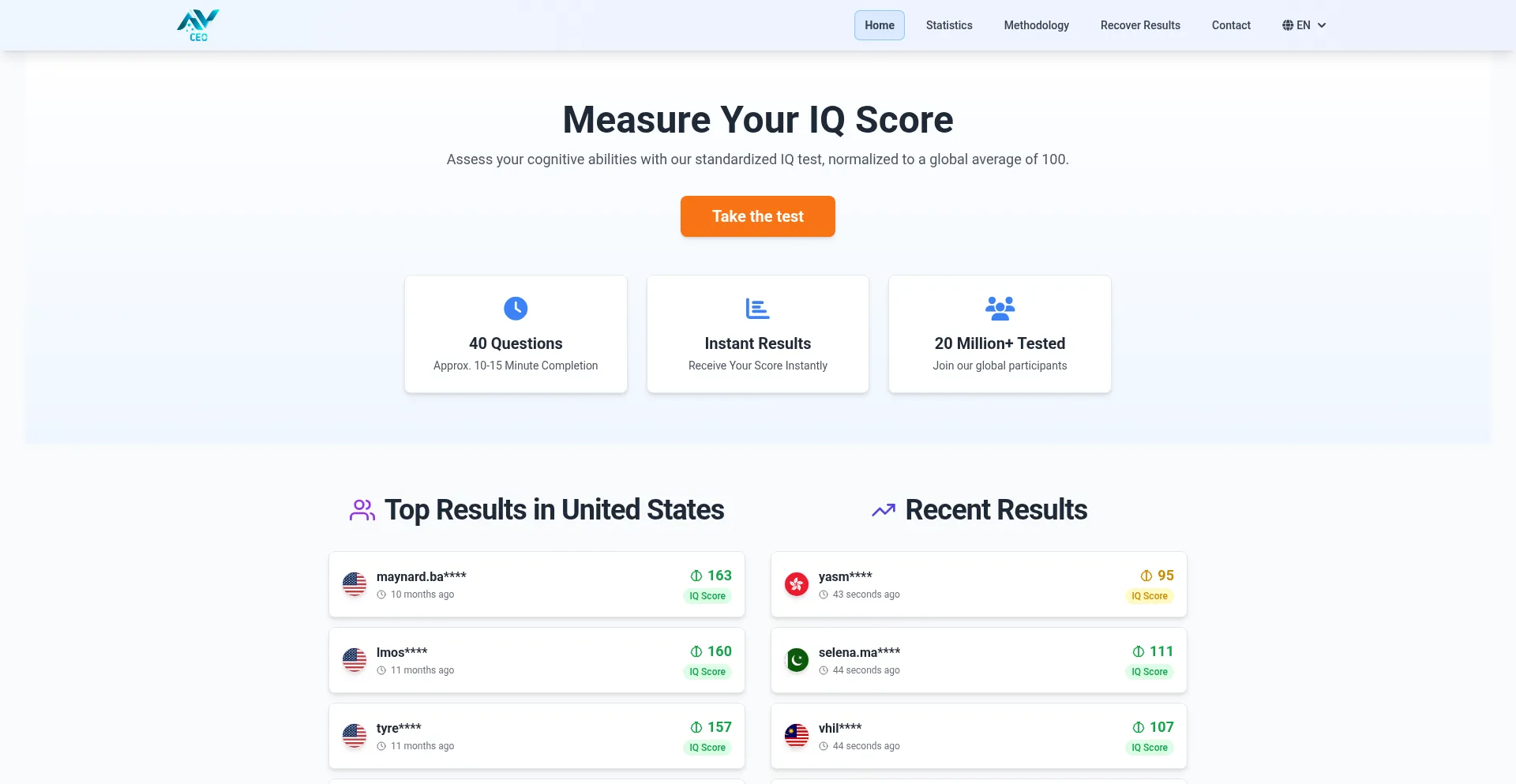 Take the official AVSEO IQ Test online. Get your IQ score instantly with our standardized assessment, trusted worldwide. Explore global IQ statistics and compare results.
