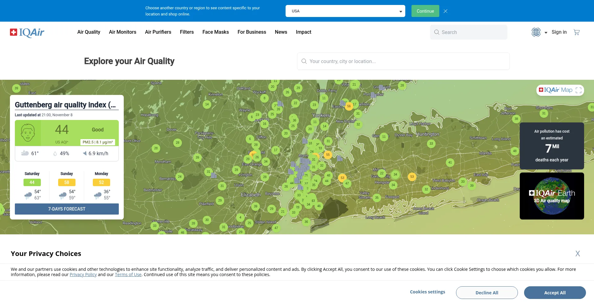 The website implements cookie consent mechanisms in compliance with privacy regulations such as GDPR or CCPA. This demonstrates that iqair.com adheres to data protection standards and provides users with control over personal data collection practices.