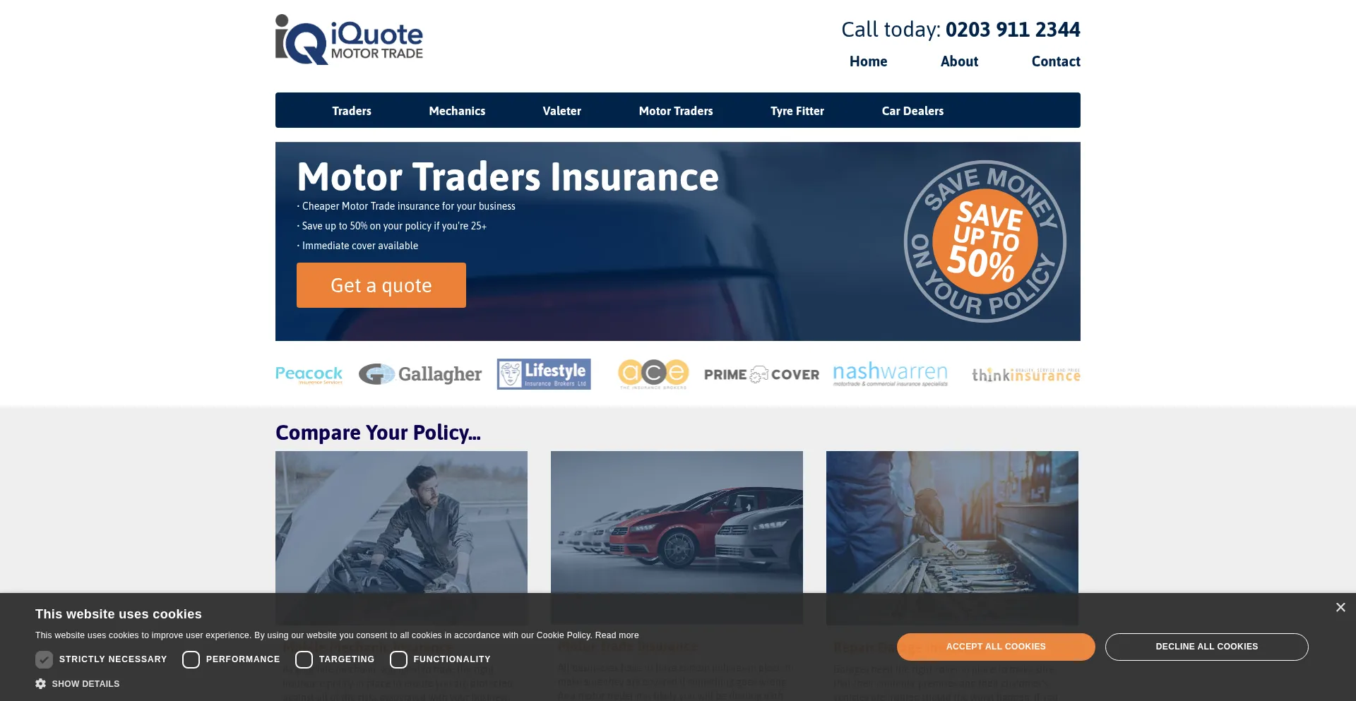 The website implements cookie consent mechanisms in compliance with privacy regulations such as GDPR or CCPA. This demonstrates that iquotemotortradeinsurance.co.uk adheres to data protection standards and provides users with control over personal data collection practices.