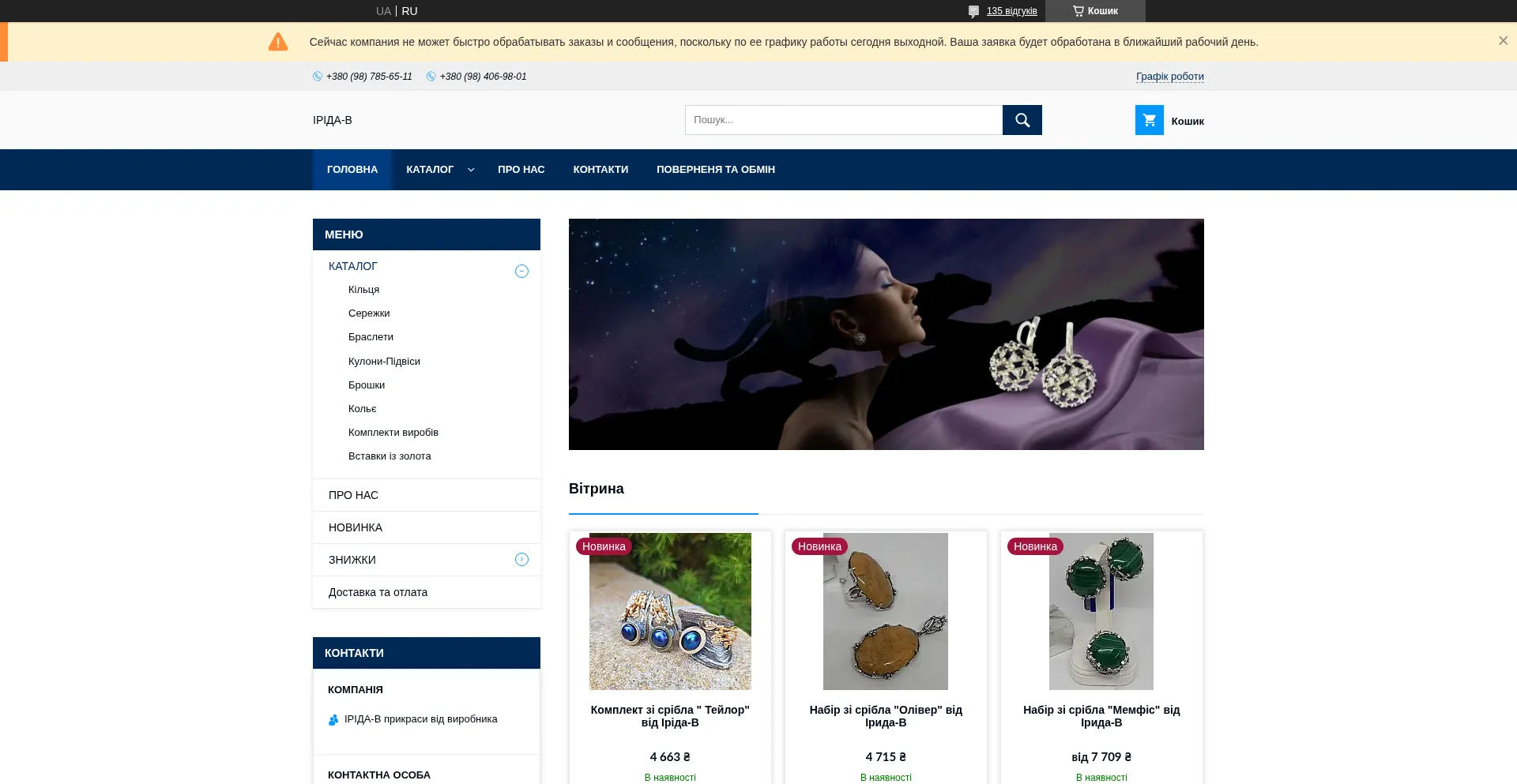 Контактна інформація, товари та послуги компанії "ІРІДА-В прикраси від виробника"